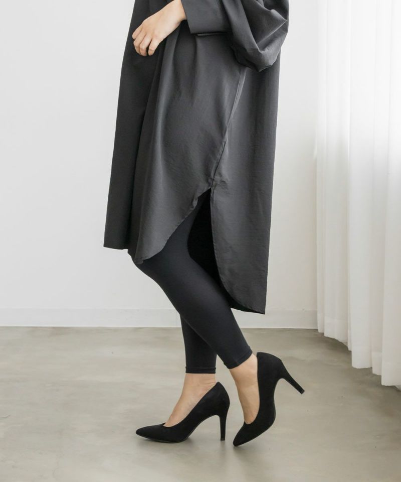 3L-4Lサイズを着用しました。商品を手に取ると見た目が通常サイズ(Mサイズなど)と変わらないので「これは本当に大きいサイズの人向けなのか?」と疑ってしまったのですが、穿いてみると驚くほどよく伸びて、快適な着心地で体型にフィットしてくれました!お腹やお尻の伸びが足りなくて下がってくることもないし、太もも、ふくらはぎ、足首まで色ムラなく綺麗にピタッとしてくれるのが嬉しいです!普通のレギンスだとお腹周りや太ももに窮屈感を感じる、所々薄くなって気になる、膝あたりや足首だけだぼつく、、、など体型によって色々な悩みがあると思いますが、どんな体型の人でも快適に、美脚に穿ける一品です◎あと私は真冬でもタイツではなくレギンスと靴下を合わせるのが好きなので(足に2枚着ている感覚が苦手!)オールシーズン使えるお気に入りのレギンスができて嬉しいです♪