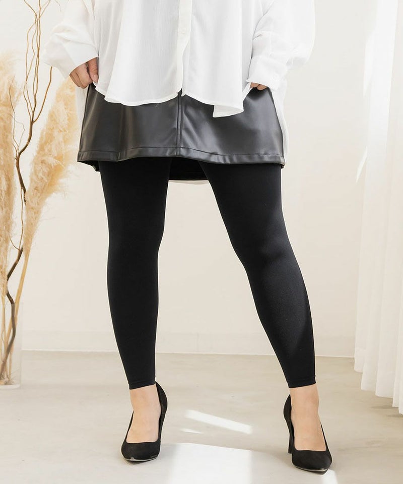 3L-4Lサイズを着ました。普段サイズ表記よりも小さいLLサイズを着ているので大きいかなと思ったのですが問題なく着用できました。というのも、縦にも横にも驚くほど良く伸びる生地で穿く人の体型に合わせてフィットしてくれる感覚です。柔らかく伸びがいいので足を物理的にシェイプしてくれるような機能はありませんが、穿くだけで美脚になったような細見え効果はしっかりありました◎裏側が肌触りの良い暖かなパイルになっていて寒い時期にピッタリのアイテムです。足元は靴下をはきたい方や、パンプスとあわせて美脚みせしたい方にお勧めのレギンスです!