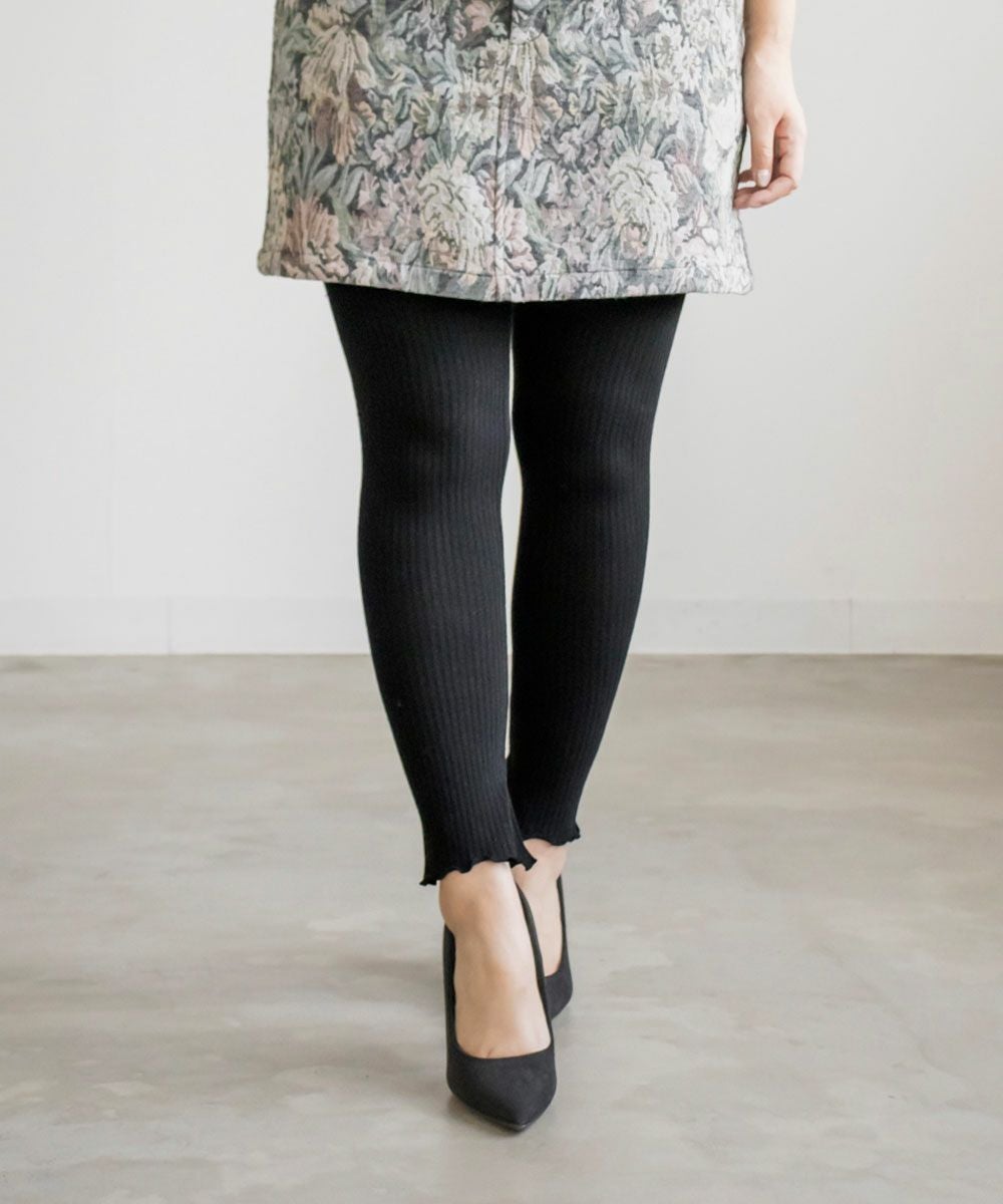 スリット リブ レギンス ベーシック 無地 シンプル 秋 冬 大人 カジュアル ロング 10分丈