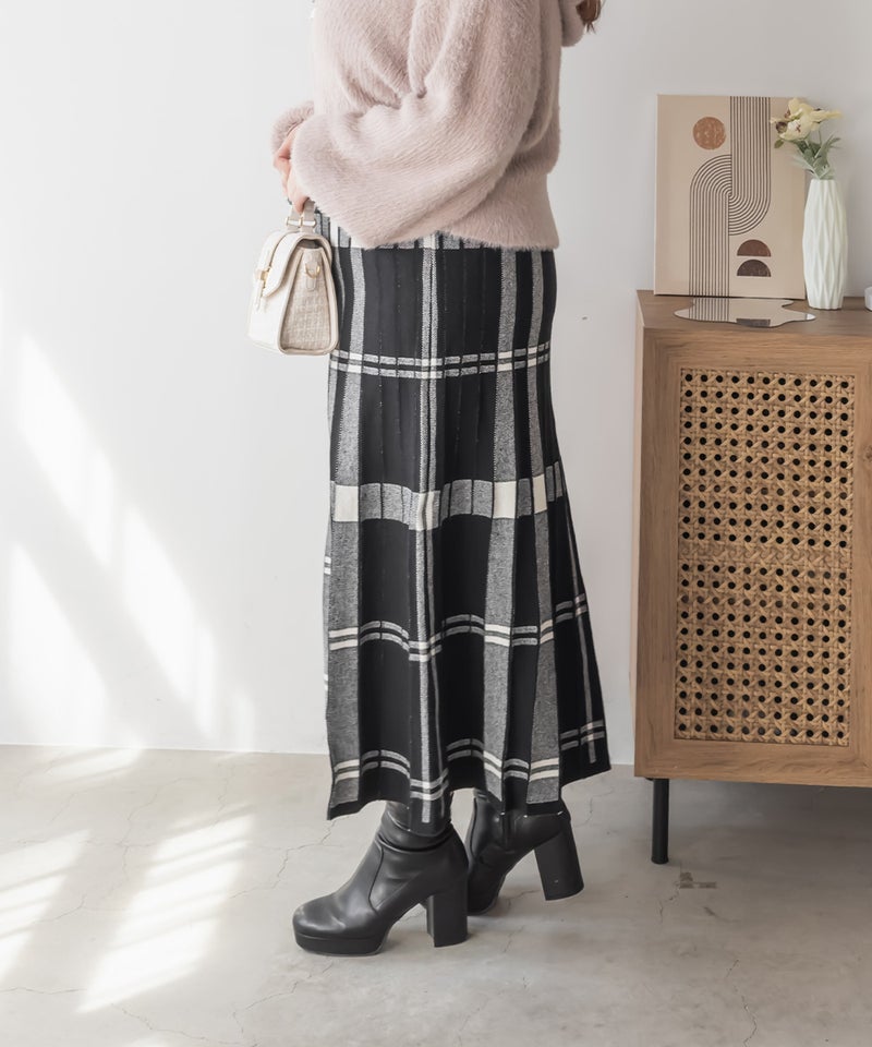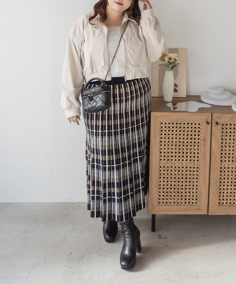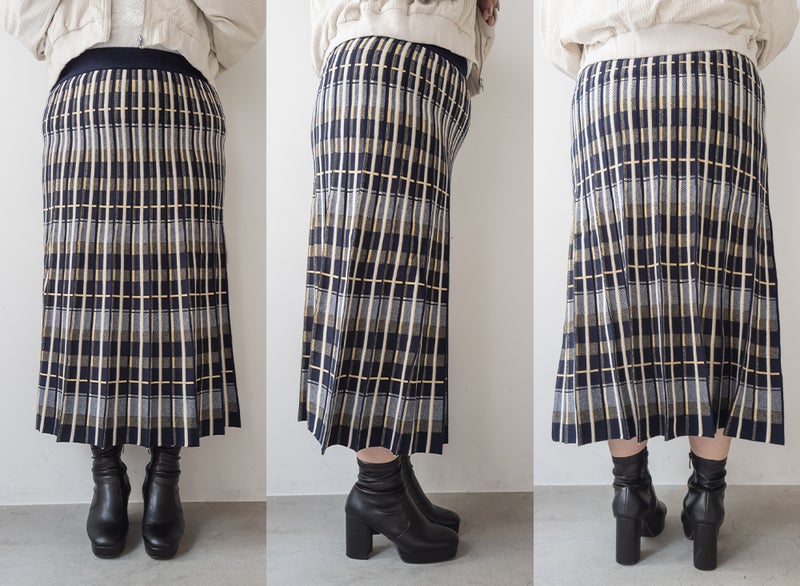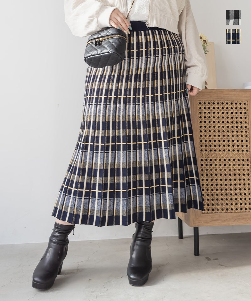 3Lサイズを着用して、ぴったりのサイズ感でした。伸縮性の良いニットなので動きやすく着用もらくに出来ました。ニット×チェック柄が秋冬ムード満載でかわいいです♪裾に向かってほどよく広がるフレアシルエットで、普段使いからお仕事まで活躍しそう!シンプルなトップスを合わせても映えるので1枚あるとコーデに大活躍しそうです◎