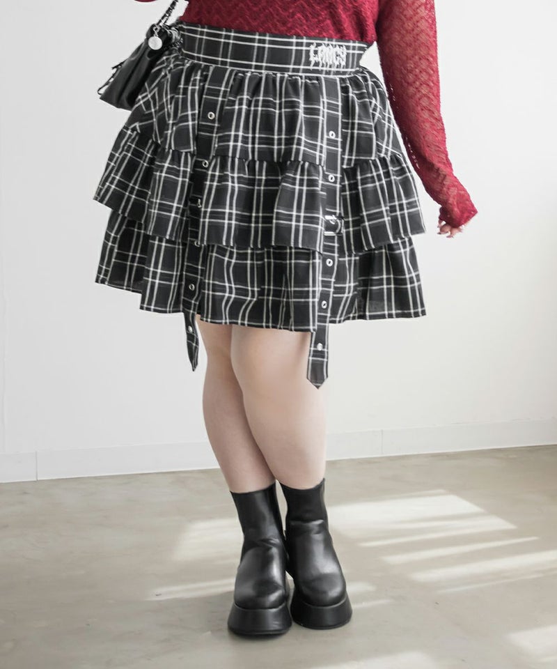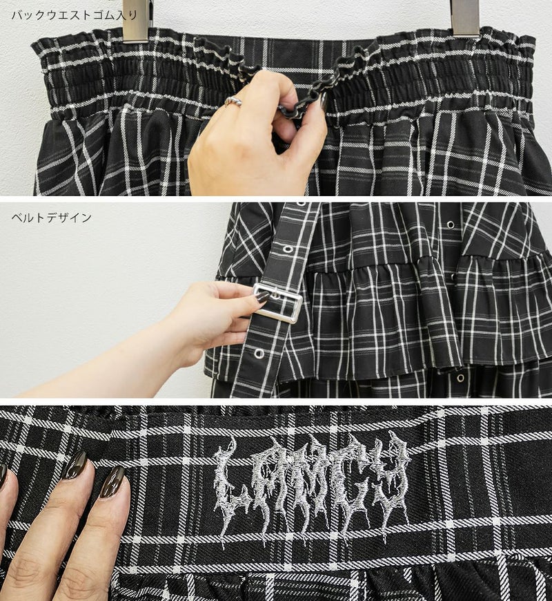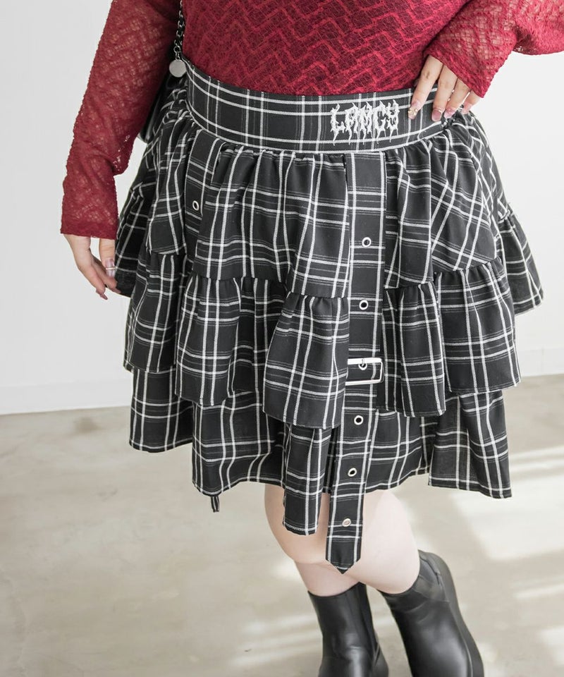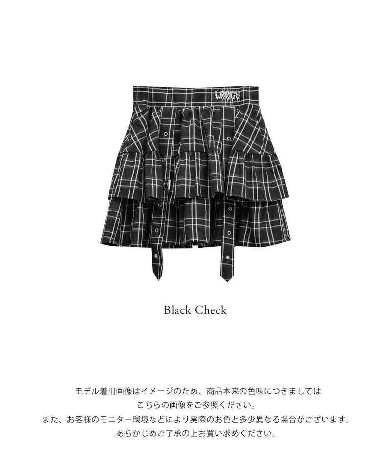 チェック柄デザインベルトフリルミニスカート チェック柄デザインベルトフリルミニスカート