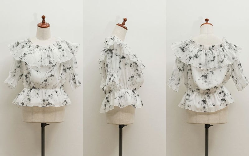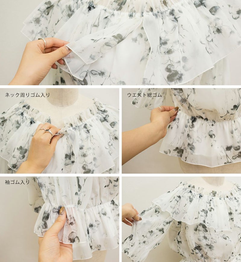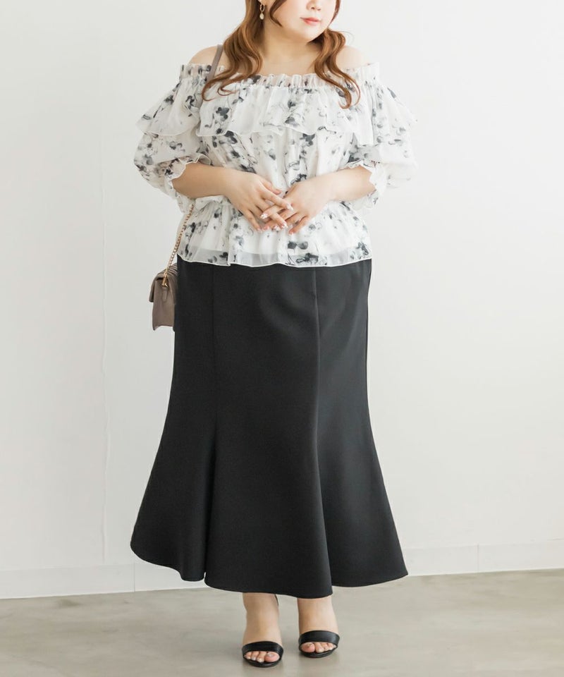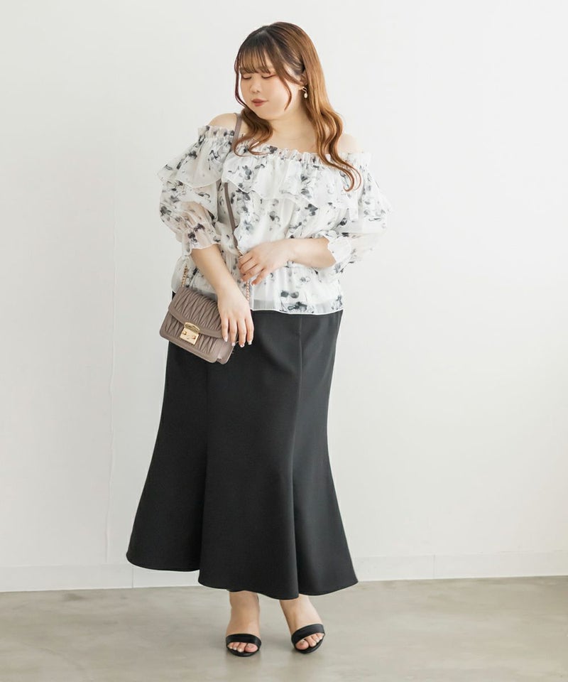 3Lを着てちょうどいい着心地でした。肩にゴムが入っていてオフショルでもずり落ちる心配はなさそうでした。透け感のある花柄が上品で、とっても女性らしい1枚です!オフショルなのでデコルテや顔回りがすっきりした印象なって、着やせも◎ウエストはゴムで窮屈感無いのに綺麗なくびれたシルエットにしてくれます。