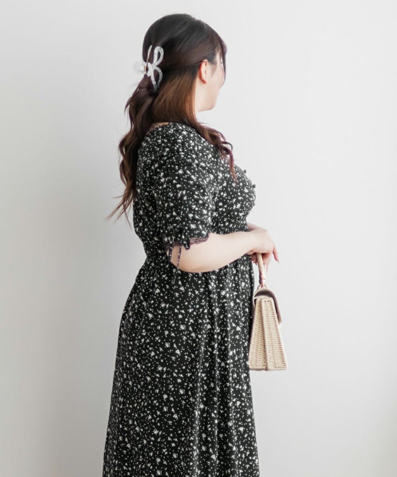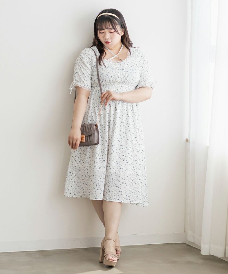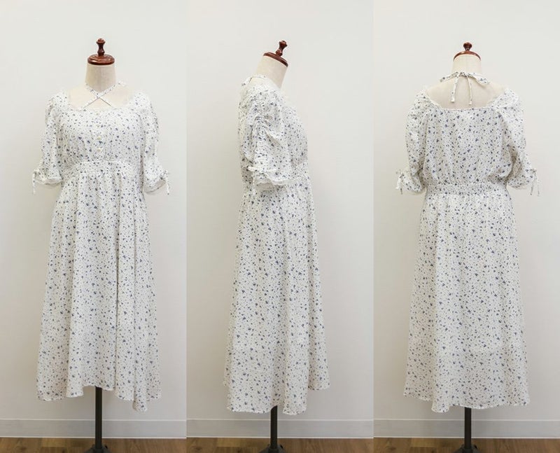 3Lサイズを着用して、全体的にちょうどいいサイズ感でした◎シフォン素材がとても軽くて、動くたびにふわっと揺れるシルエットがとっても可愛いワンピースです♪ウエスト部分はゴム仕様なので、締め付け感もなく、着心地もラクでした。ネックのリボンデザインなど細かい部分がガーリーで可愛いです♪丈は短めで、春夏らしく涼しく着られます◎低身長さんでもバランスよく着られると思います!デイリーからデートなど幅広く使えそうです。