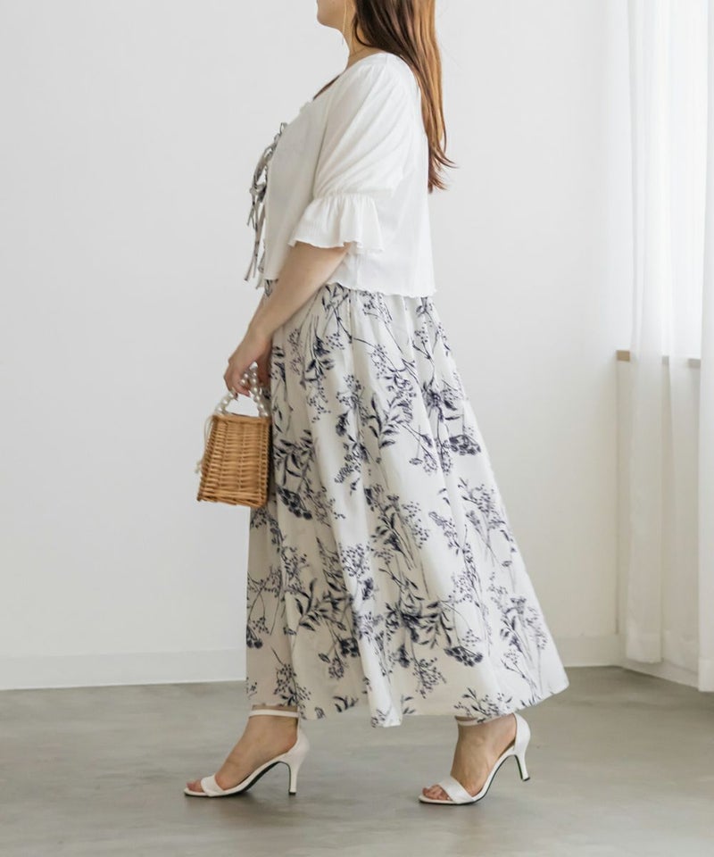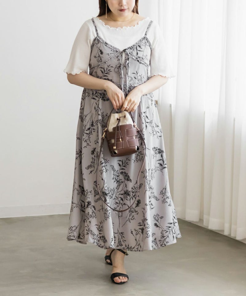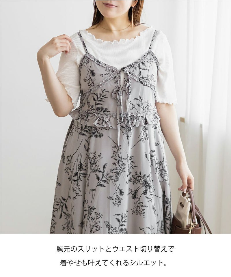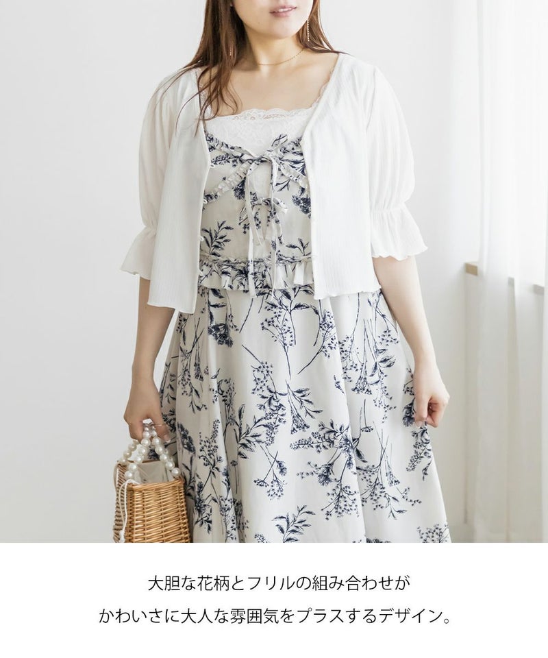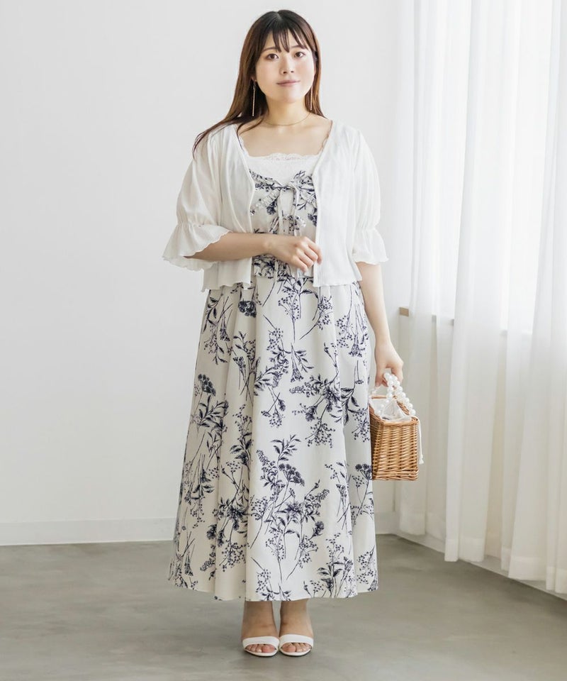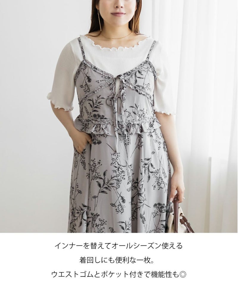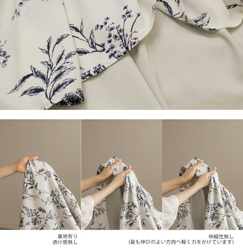 3Lを着てちょうどいいサイズ感でした。いつもどおりのサイズ選びで問題なさそうです!後ろはゴム入りで窮屈なところはなく、ノンストレスで着られました!大きめの花柄がオトナっぽく、爽やかな雰囲気です。裏地もついていて安心のデザイン。オールシーズン着られる着心地でした!フリルとリボンがあしらわれたデザインがフェミニンで、色味はシックなので色々なシーンに着ていけそう◎カーデやシャツを羽織ったコーデもお勧めです♪