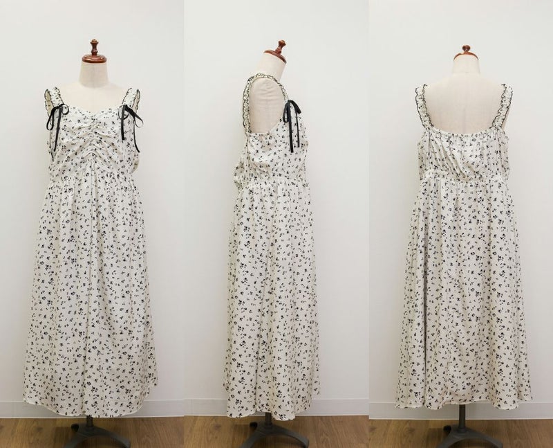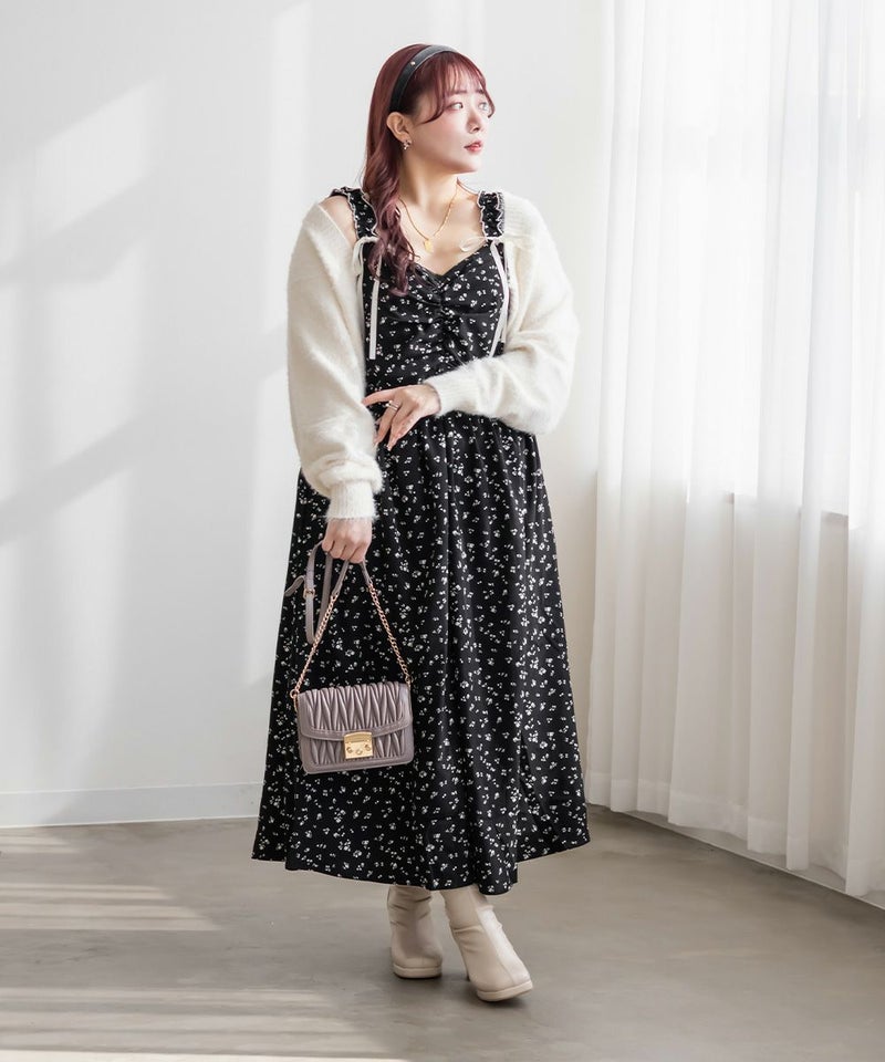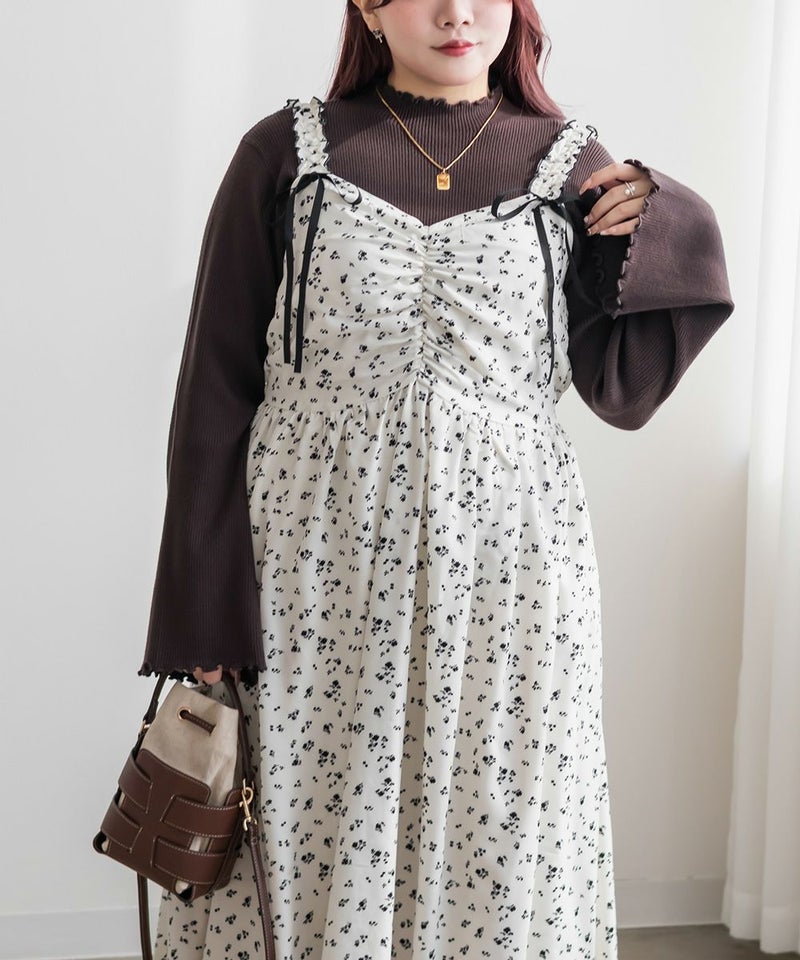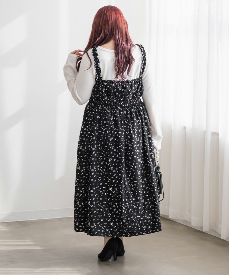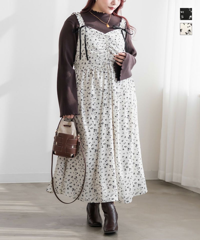 3Lを着てちょうどいいサイズ感した。身頃は程よくゆとりがあって、窮屈感なくリラクシーに着られます。華やかなフラワープリントが目を惹くワンピースは、肩に配色リボンがついていてかわいいアクセントになります!生地は程よく落ち感があって、広がりすぎないシルエットなのも大人っぽく着られるポイント◎ロングシーズン着られて、涼しくなってきたらカーディガンやデニムジャケットを羽織ってカジュアルダウンするのもおすすめです!一枚でしっかり映える主役級ワンピなので、ちょっとしたお出かけや女子会にもぴったりです♪