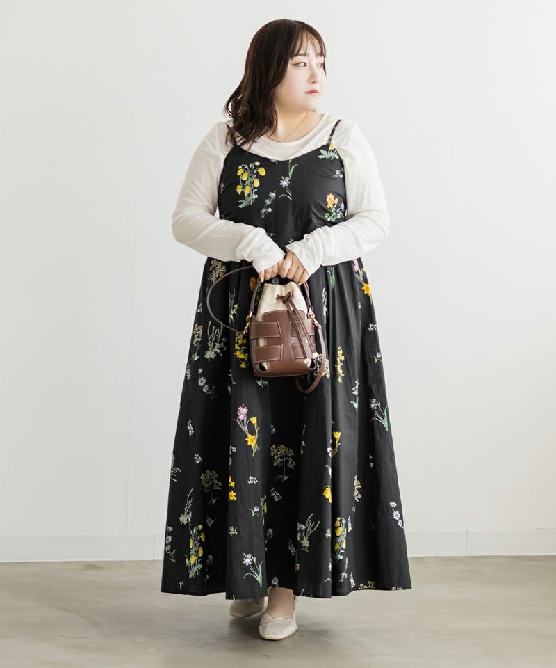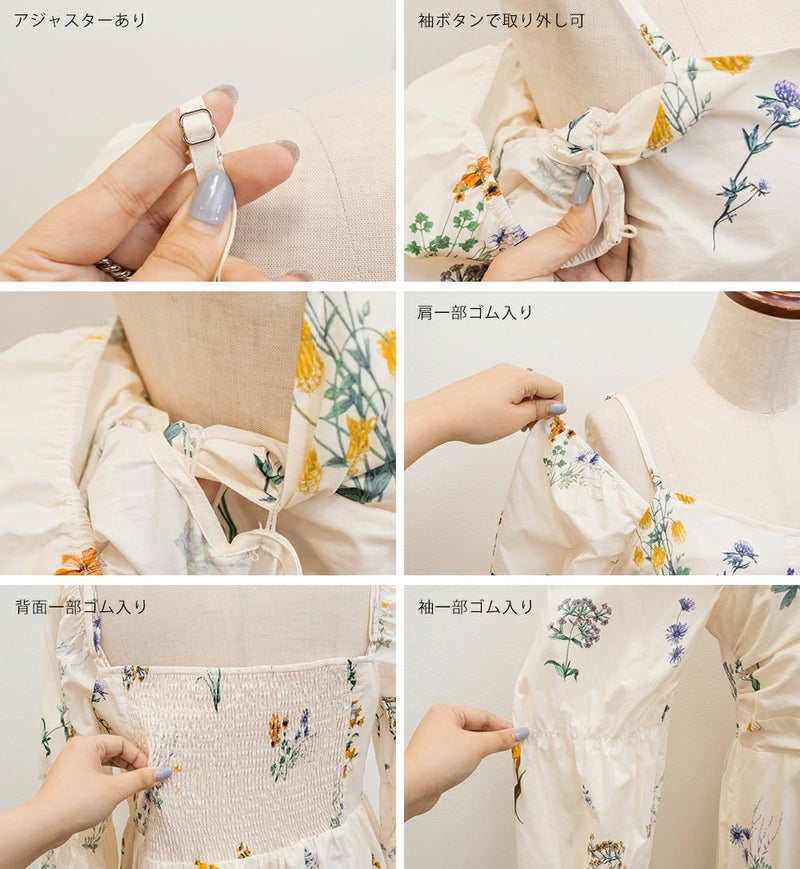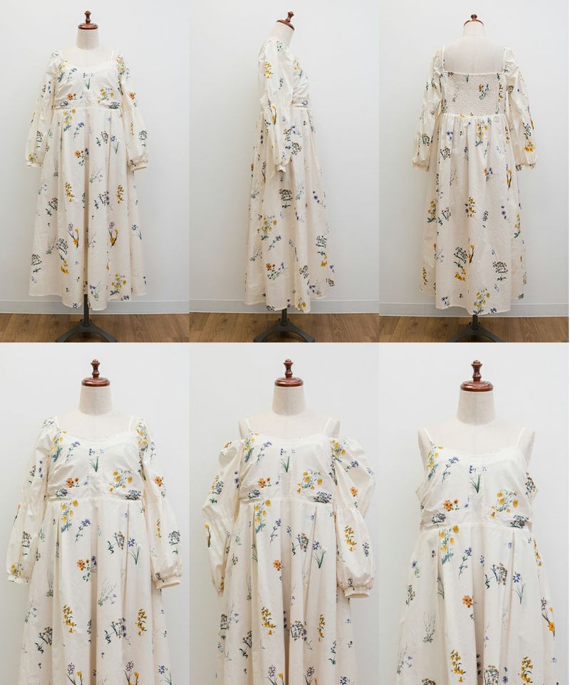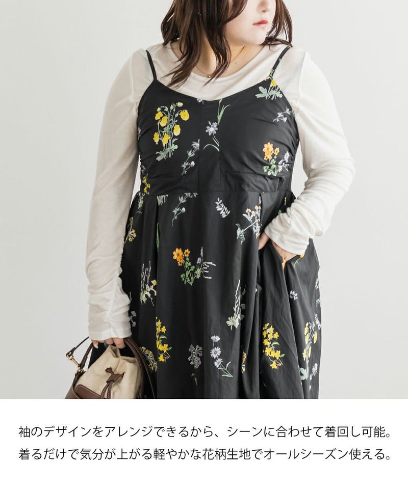 LLサイズを着てぴったりでした。バストは程よくフィット感がありながらも後ろゴム仕様で窮屈感はありませんでした!フィット&フレアでメリハリのあるシルエットで着られます♪落ち感のあるロング丈が縦のラインを強調してくれる花柄ワンピースで、袖は3WAY仕様になっていてオフショル・オンショルにしたり、袖を外してキャミワンピにしたりと気分やシーンに合わせてアレンジ可能です◎ さらりとした軽い生地感で動きやすく、ウエストの切替位置が高めなのでスタイルアップ効果も抜群。デイリーにもお出かけにも着たくなる1枚です!
