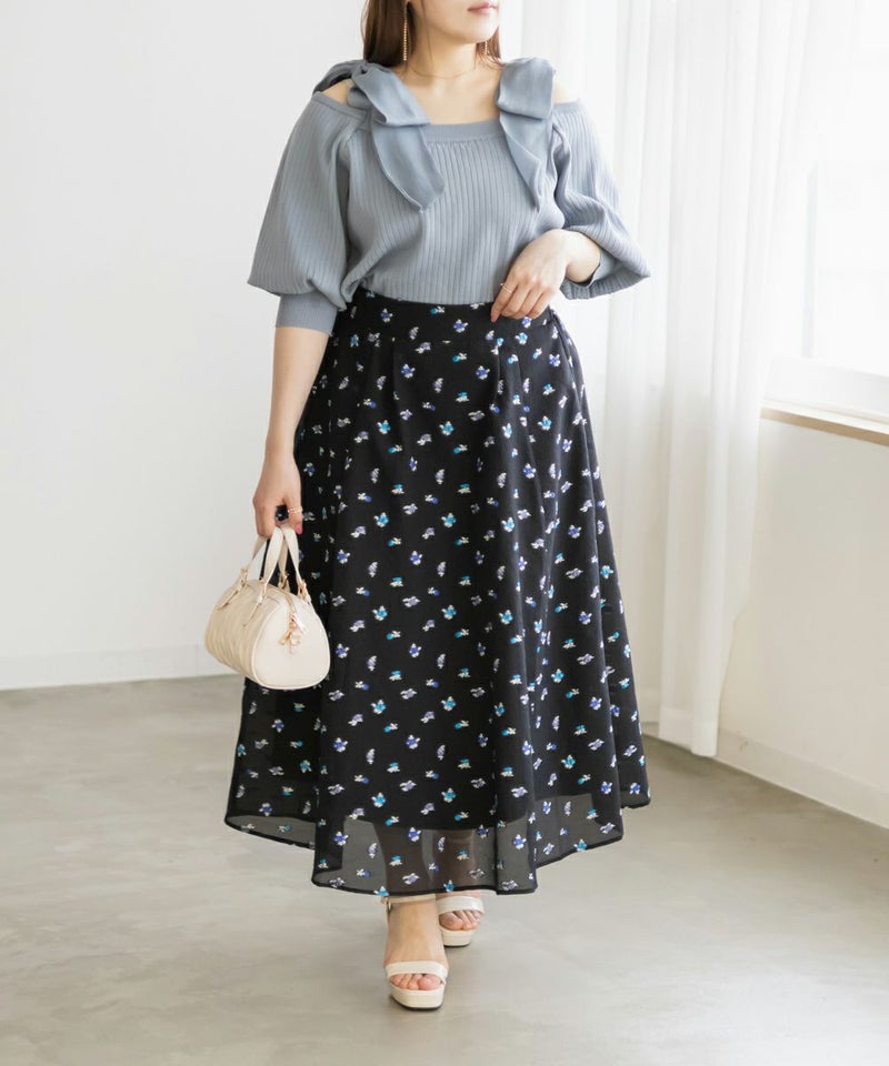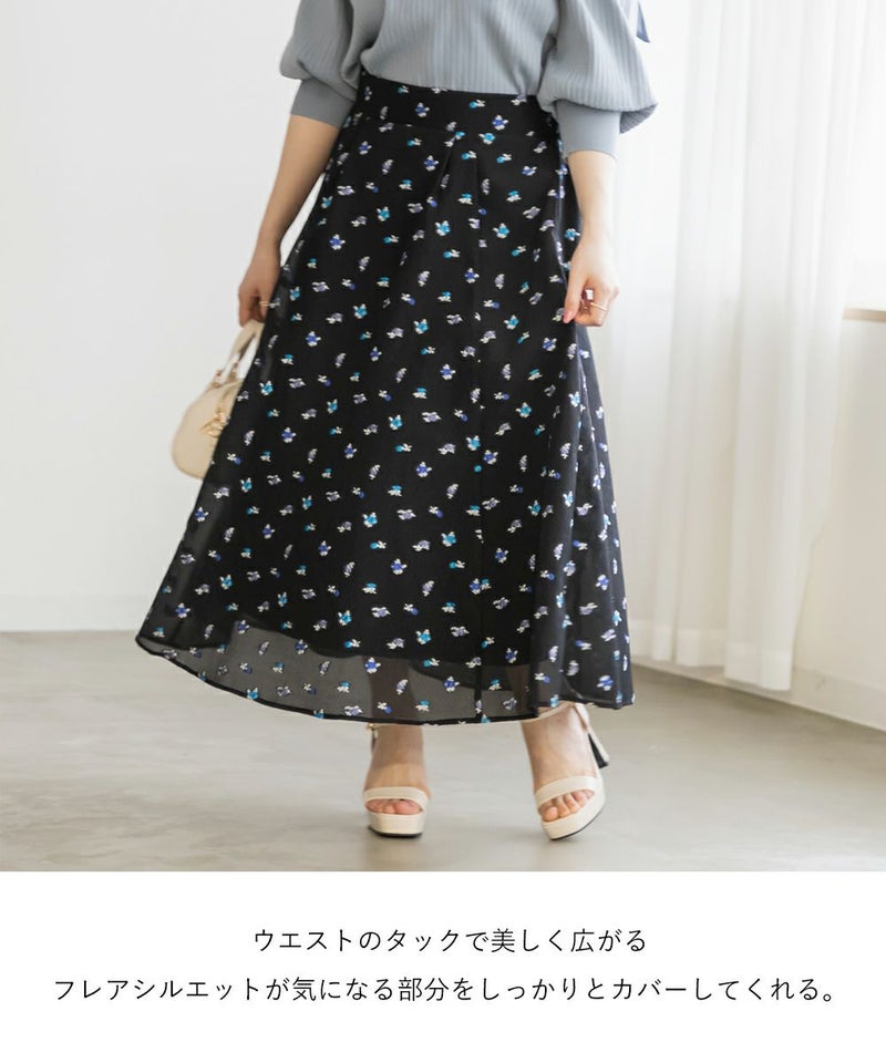3Lサイズを着用しました! ウエストは後ろゴム仕様でフィット感がありながらも、締め付け感がなく快適な履き心地でした! タックがしっかり入ったデザインなので、ふんわりと立体的なシルエットになり、気になる腰まわりもカバーしてくれます。 軽やかなシアー素材に上品な花柄が施されていて、動くたびにふわっと揺れるのが魅力◎ 透け感が程よく、大人っぽく高級感のある印象を演出してくれます。シンプルなトップスと合わせるだけでコーデが華やかになり、きれいめにもカジュアルにも着こなしやすいのが嬉しいポイント♪ シアー感があるので重たくならず、季節を問わず長く楽しめる一枚です! 足元はパンプスできれいめに仕上げるのはもちろん、スニーカーと合わせてカジュアルダウンするのもおすすめです!花柄スカートが好きな方や、上品な雰囲気のスカートをお探しの方にぴったりのアイテムです!