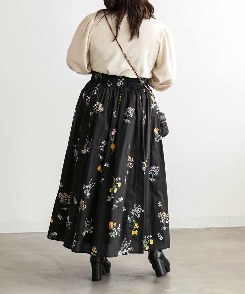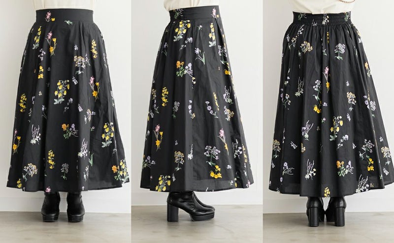 LLサイズをきてちょうどいい着心地です。歩くたびにふわっと揺れる軽やかな花柄ロングスカートです。ウエストは後ろゴム仕様になっているのでラクに穿けて、しっかり安定感もありました◎ 裾にかけて自然に広がるフレアシルエットが、気になる腰回りをカバーしてくれてバランス良く着られます。華やかな花柄ながら落ち着いた色味なので、Tシャツでカジュアルに、ブラウスでフェミニンにと幅広いコーディネートに活躍する一枚です♪