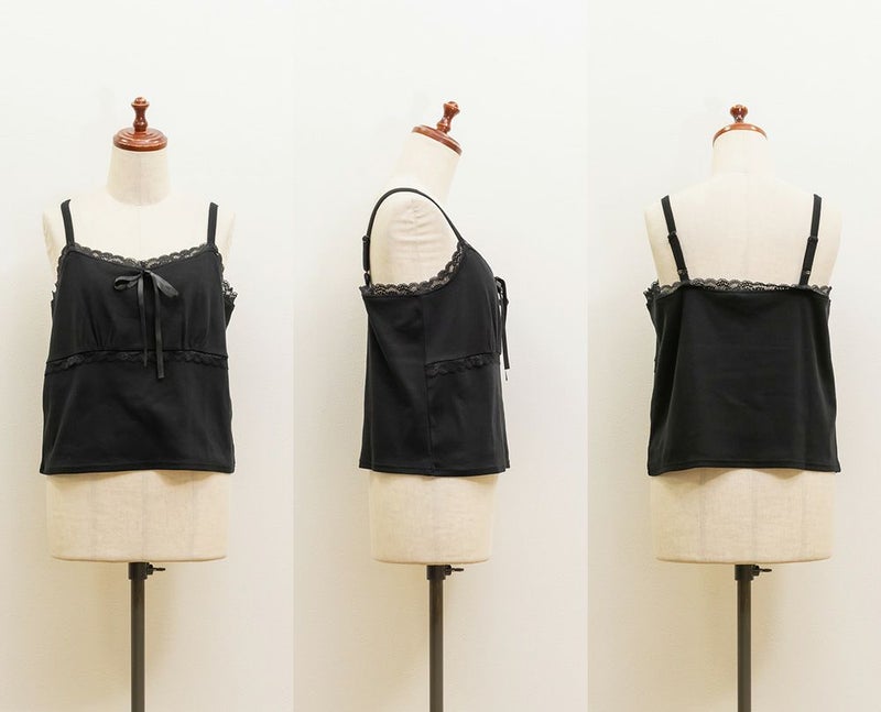 3Lサイズを着用しましたが、フィット感もちょうどよく、窮屈さもなく快適な着心地でした◎ 程よい伸縮性があるリブ素材で身体に優しく沿いながらも、ピタッとしすぎず自然なシルエットに。胸元のリボンと繊細なレース使いが、コーデに甘さをプラスしてくれて、1枚あるだけで着こなしの幅が広がるアイテムです♪ Tシャツやシアートップスとのレイヤードにもぴったりで、トレンド感とガーリーな雰囲気を両立できるのが嬉しいポイントです。ジャンスカやカーデのインナーとしても大活躍間違いなしです◎