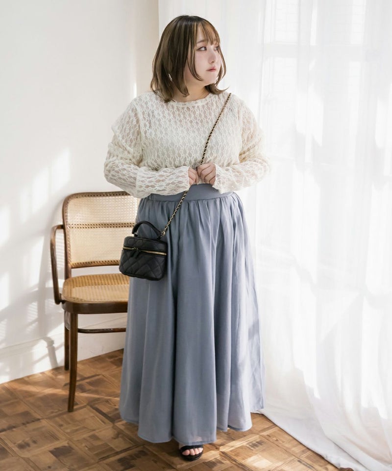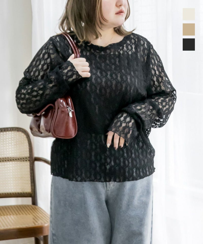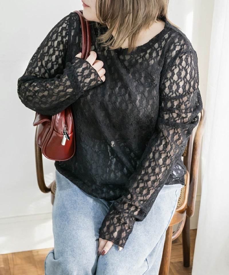 3Lサイズを着て、ちょうどよい着心地でした。少し伸縮性があって着用感も問題なかったです!総レースのデザインが、フェミニンさを引き立てるプルオーバーです。トップスとして1枚で着てもトレンドコーデにピッタリ◎カジュアルなデニムと合わせてもきちんと感があり、ワンピースなどのインナー使いもおすすめです◎普段使いにもおしゃれに着こなせるので、重宝する一枚です♪