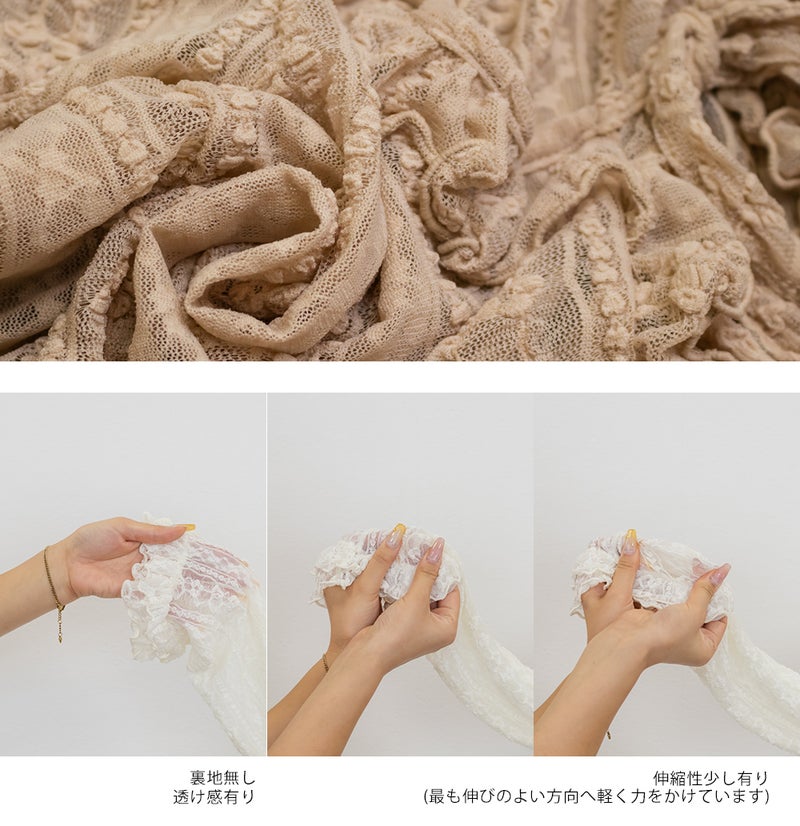 生地感 伸縮性のある柔らかなレース素材です。