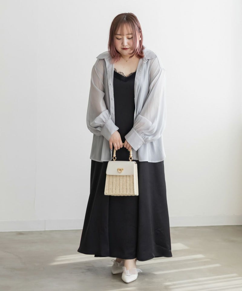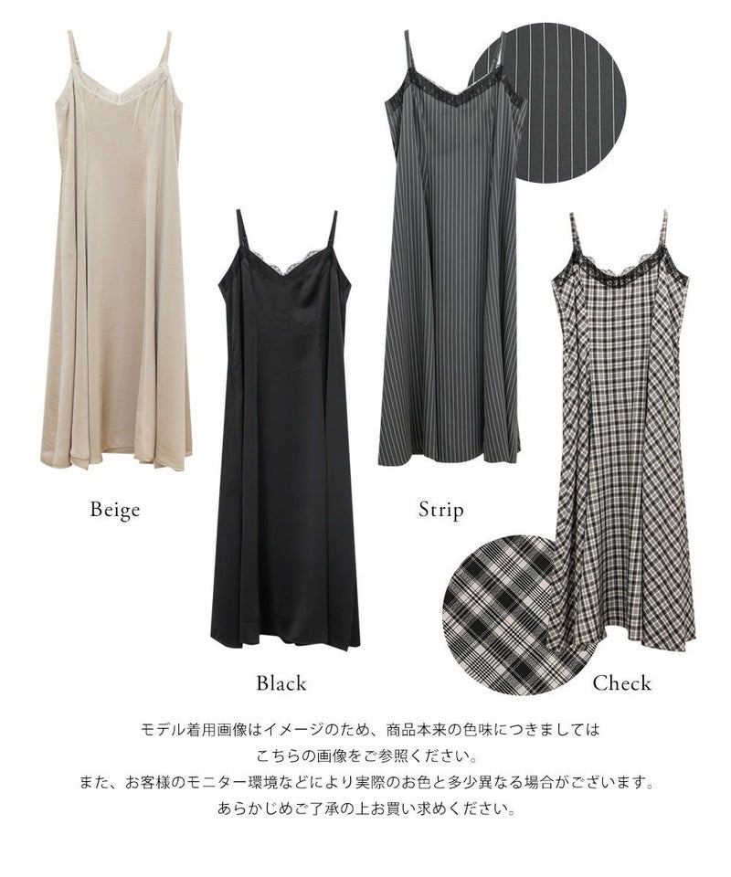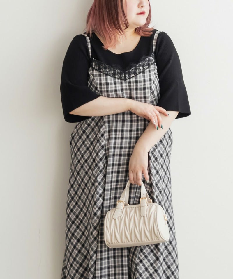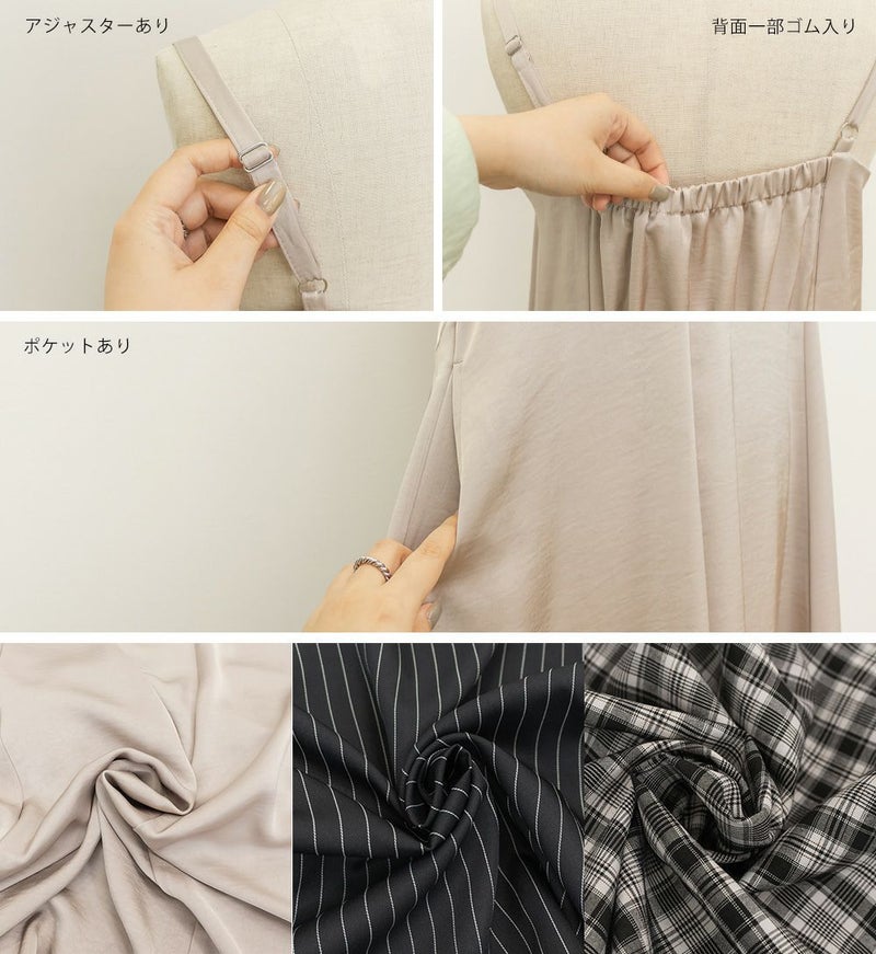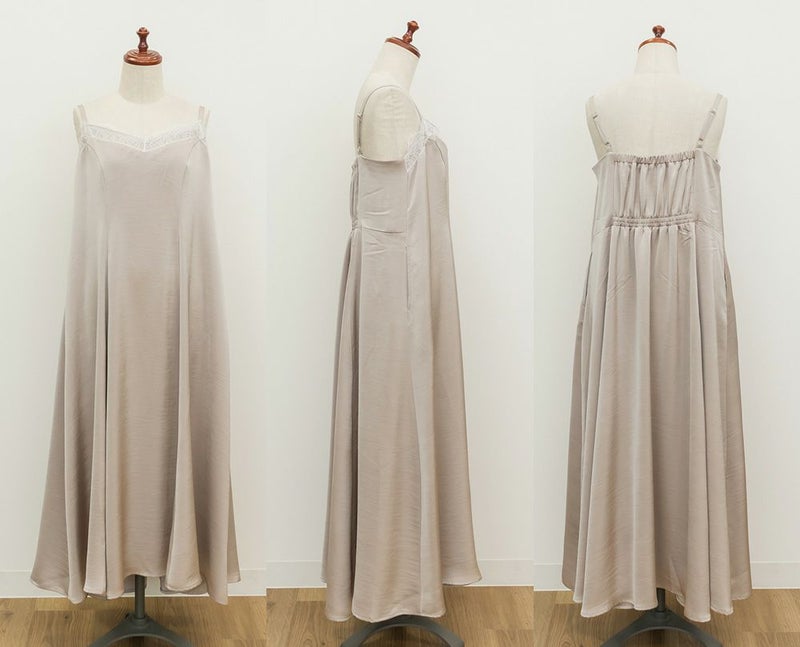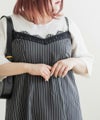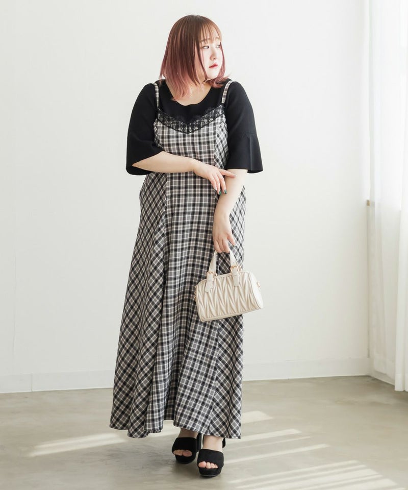 3Lサイズを着用しました。肩ひもはアジャスターで調節ができるので、自分の身長に合わせてバランスよく着ることができました◎ウエスト周りやヒップに程よくゆとりがあり、身体のラインを拾いすぎず、きれいなシルエットで着られました。繊細なレースが胸元に使われていて、フェミニンな雰囲気たっぷり♪ でも甘くなりすぎず、大人っぽく着こなせるのが嬉しいポイントです。季節を問わずインナー次第で着回しが効くのも魅力的です!Tシャツやブラウスとのレイヤードはもちろん、羽織を合わせてもレースが映えるので、1枚持っておくと本当に便利なアイテムだと思います◎