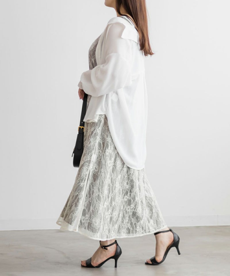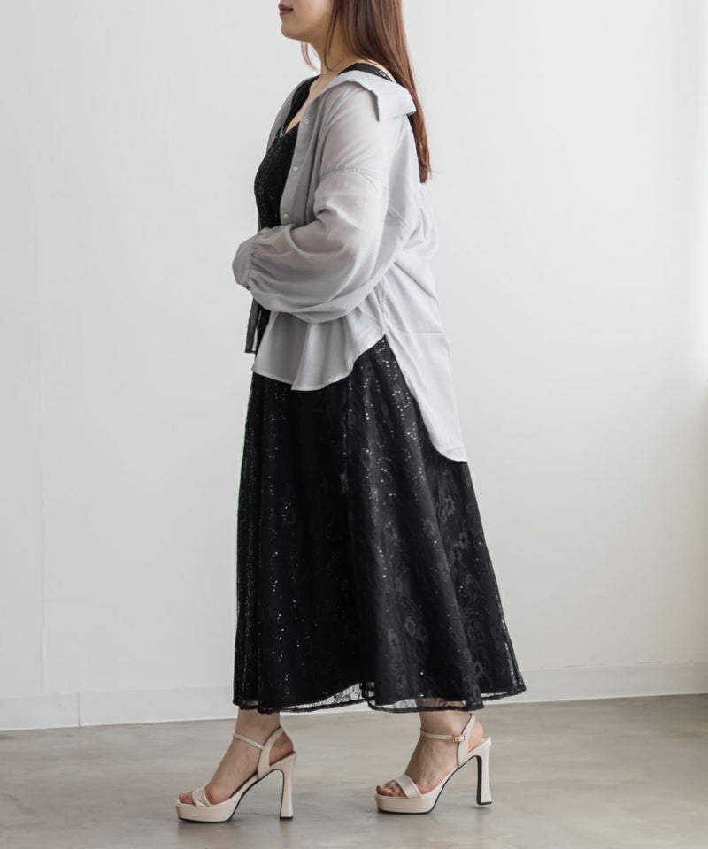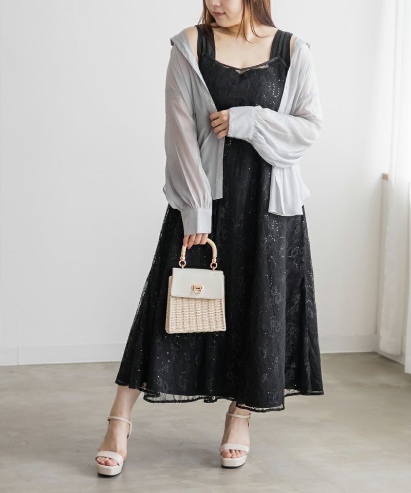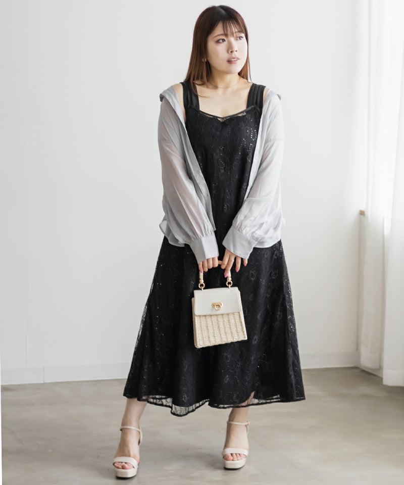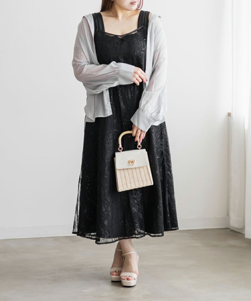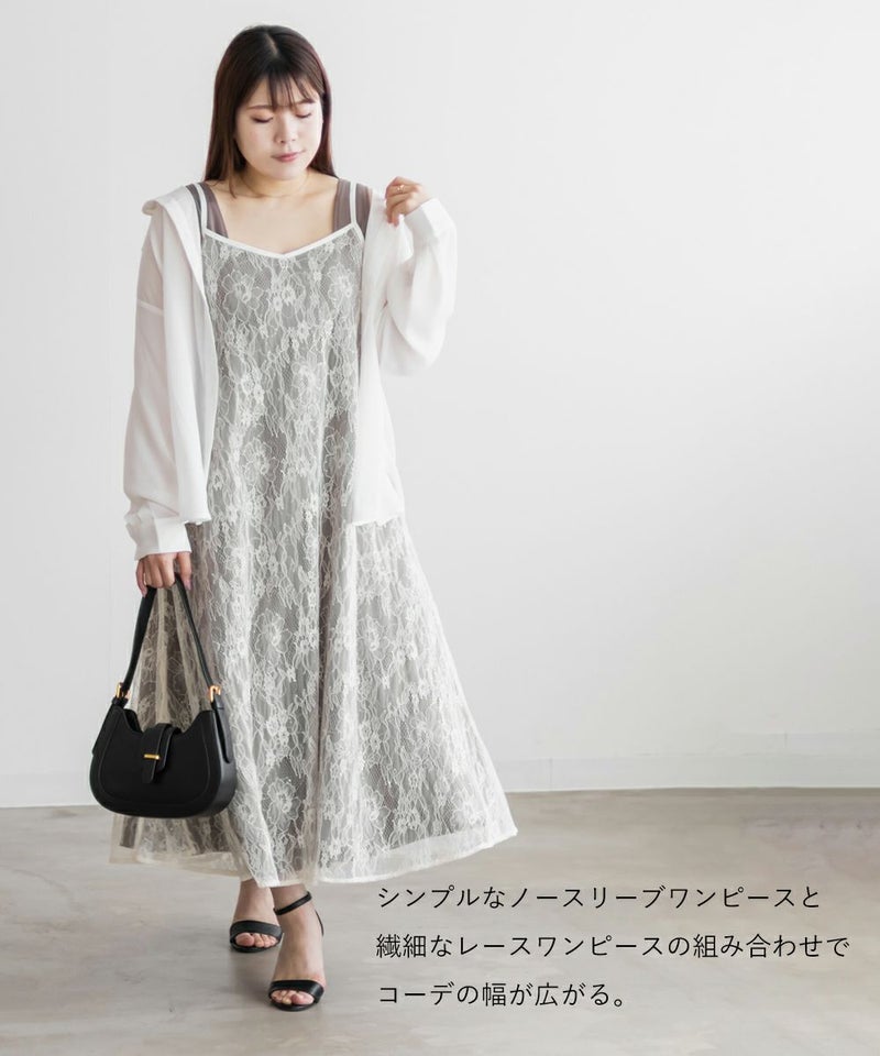 クレット 大きいサイズ セットアップ ノースリーブ キラキラ シアー レイヤード ロング CLETTEオリジナル★レースキャミソールセット3WAYワンピース