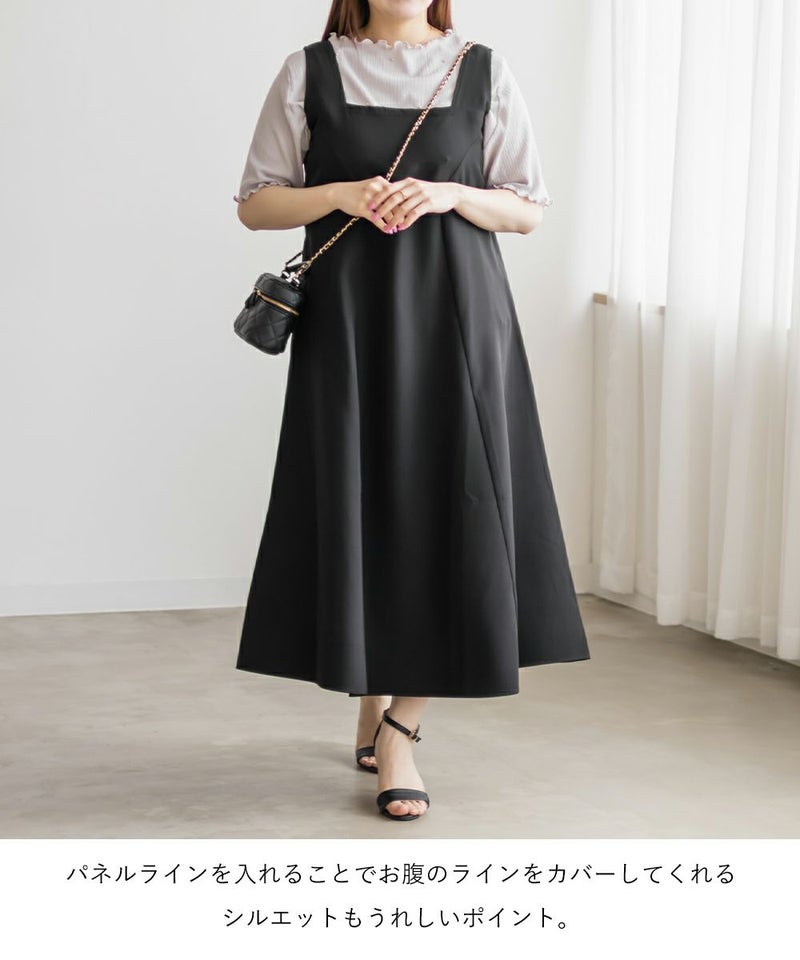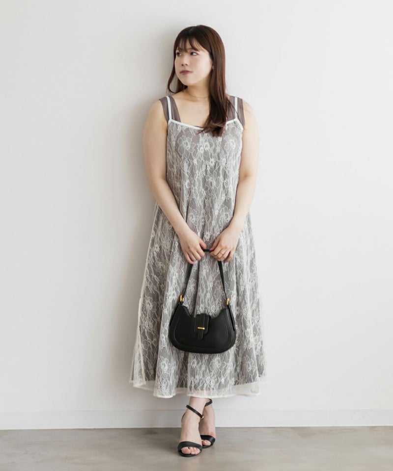3Lサイズを着用して、ウエストまわりやヒップも程よくゆったりしていて、着心地はちょうどよかったです。レースキャミソールとワンピースがセットになっていて、着回し力が抜群なアイテムです◎セットで着ると甘めなレイヤードスタイルが完成して、特別感のある着こなしに♪ワンピース単体でも大人っぽく着られるし、キャミは他のトップスと合わせても使えてとにかく便利!インナーを着ても、ノースリーブでも着られるので色々な着回しが楽しめます!