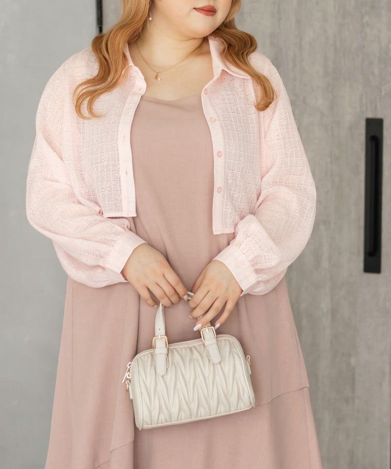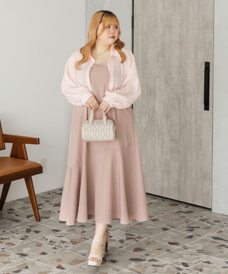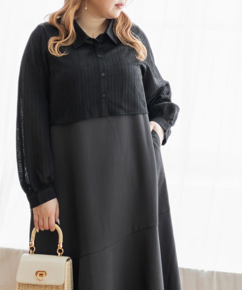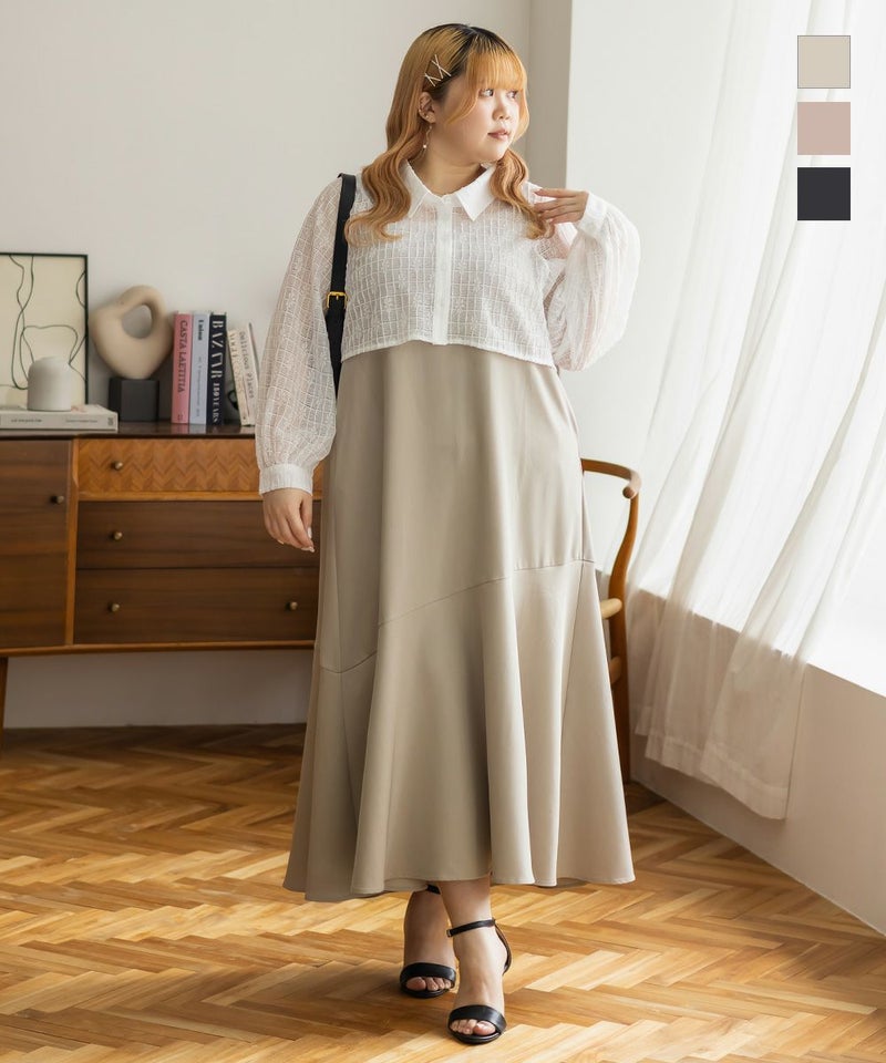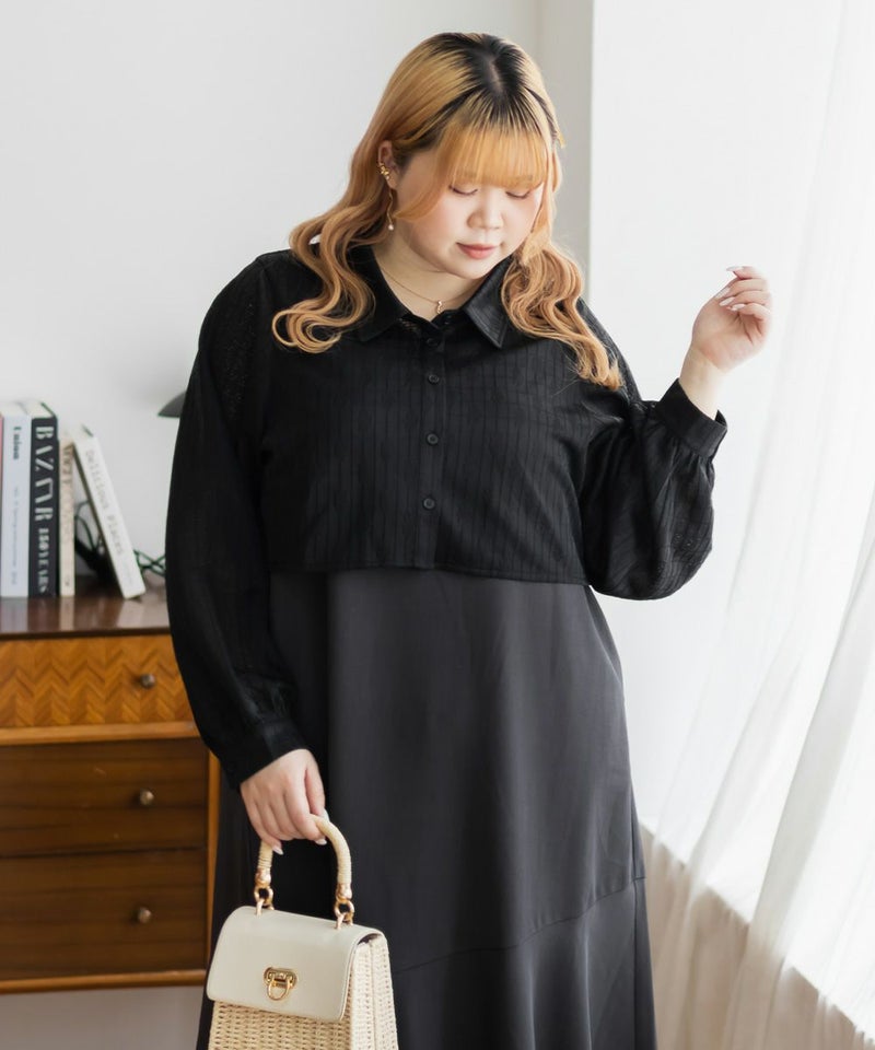 3Lを着て、ウエスト部分は締めつけ感がなく、程よくゆとりがありながらも、すっきりとしたシルエットなので、ちょうどいい着用感でした。レースシャツとワンピースのセットで着るだけでコーデが完成するのが嬉しいです◎ワンピースはストンと落ちるシルエットで、すっきりとした印象に見せてくれます。レースシャツは羽織るだけでこなれ感が出て、着こなしの幅が広がるのもポイントです。セットで着るのはもちろん、それぞれ単体でも使えて着回し力抜群です♪