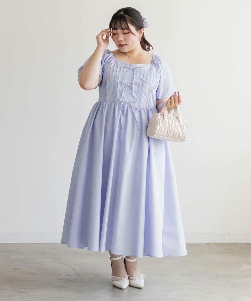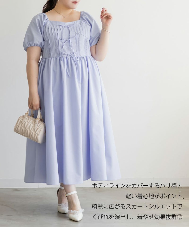 上半身はコルセットっぽくコンパクトに見えるよう設計されていて、くびれを演出してくれます◎ふんわりと広がるスカートシルエットで体のラインを拾いにくく、体型カバー力も抜群。自然とスタイルアップして見えるのもうれしいポイント!パンプスやフラットシューズはもちろん、カジュアルにスニーカー合わせでも可愛く着こなせます!