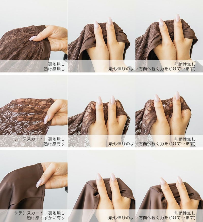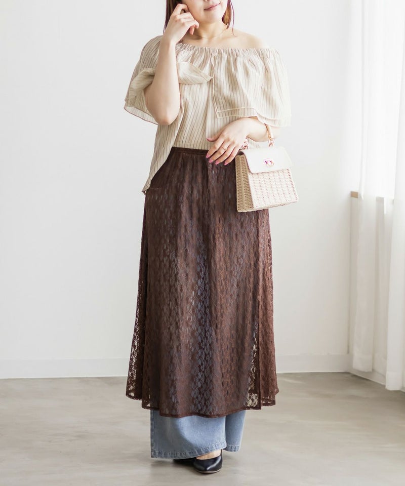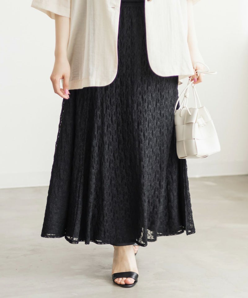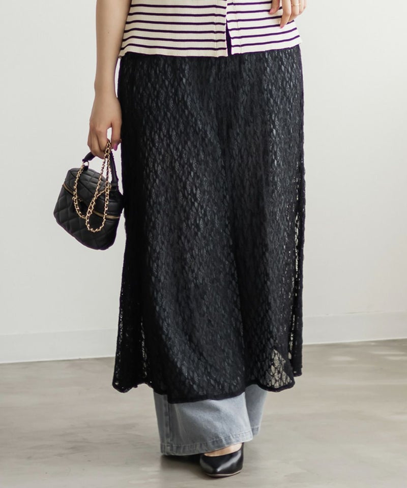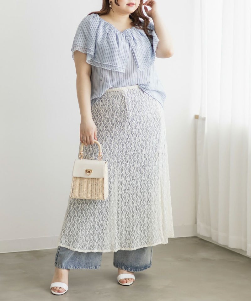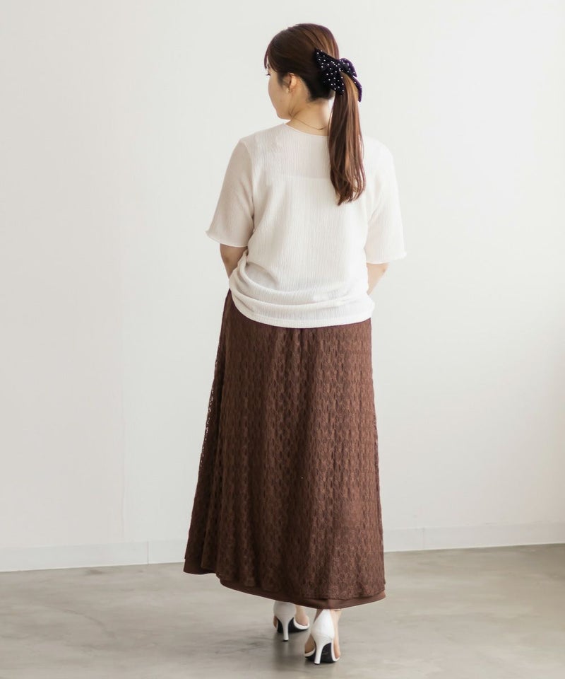 3Lを着て、ちょうどいいサイズ感でした。ウエストは総ゴム仕様で穿き心地もらくちんでした◎着丈も足首くらいのバランスでちょうどいいです!レースを前にして2枚で着用したり、サテンスカート単品で使ったり、レーススカートのみでパンツなどとレイヤードしたり、どのパターンも大人可愛く決まるので、気分で使い分けたいです♪レーススカートは総レースで上品さもあって、スリット入りでチラッと重ね着が見えるのもポイントです◎サテンスカートは、ツヤ感も綺麗できちんと感のある着こなしにもマッチします!1セットあると大活躍するスカートは1枚持っておくと本当に便利!