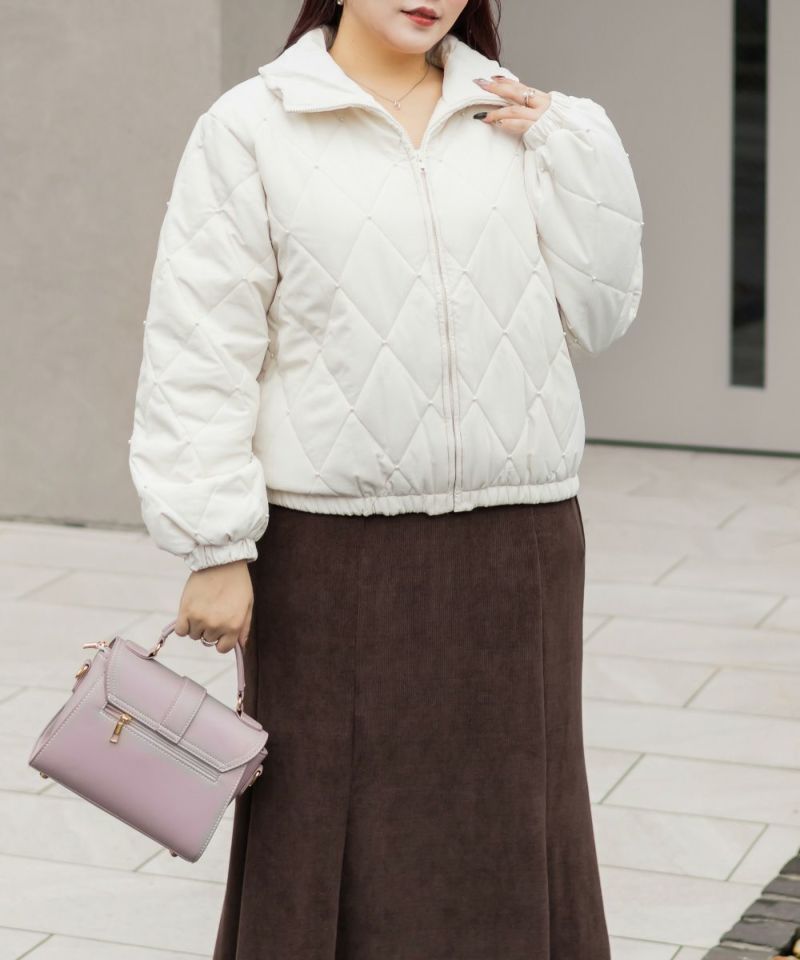 3Lサイズを着用してちょうどいいサイズ感でした!フェミニンさが目を惹くショートジャケットで、程よい丈感と軽くて着心地も抜群なアウターです◎インナー次第で長い季節お使いいただけます。デニム合わせはもちろん、ワンピースやミニスカートにもピッタリです♪キルティングとパールの組み合わせが高見えでかわいいです!写真映えするアイテムなので、お出かけや旅行などたくさん着回しできそう!