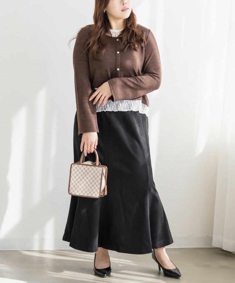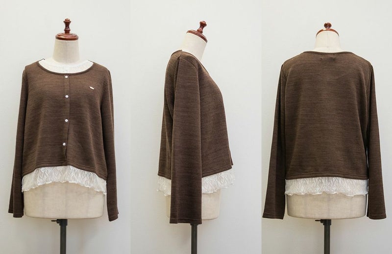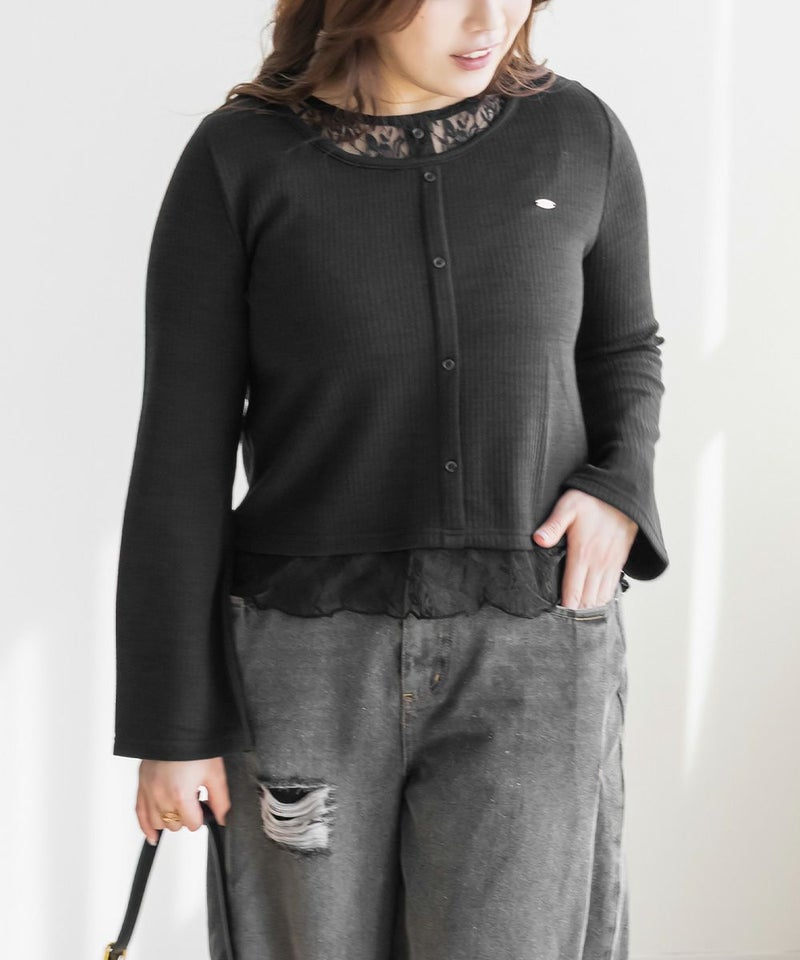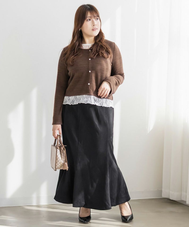 3Lサイズを着用して丁度良い着心地でした!軽く伸縮性のあるカットソー生地なので窮屈感なくノンストレスでした。レースを重ねたドッキングデザインが簡単にスタイリングを完成させてくれる優秀トップスです。 着丈はちょうどよく裾出しで着て可愛い1枚です♪1枚で着るだけで今っぽくなれて、シンプルなスカートやパンツと合わせて大人カジュアルに着こなせます!
