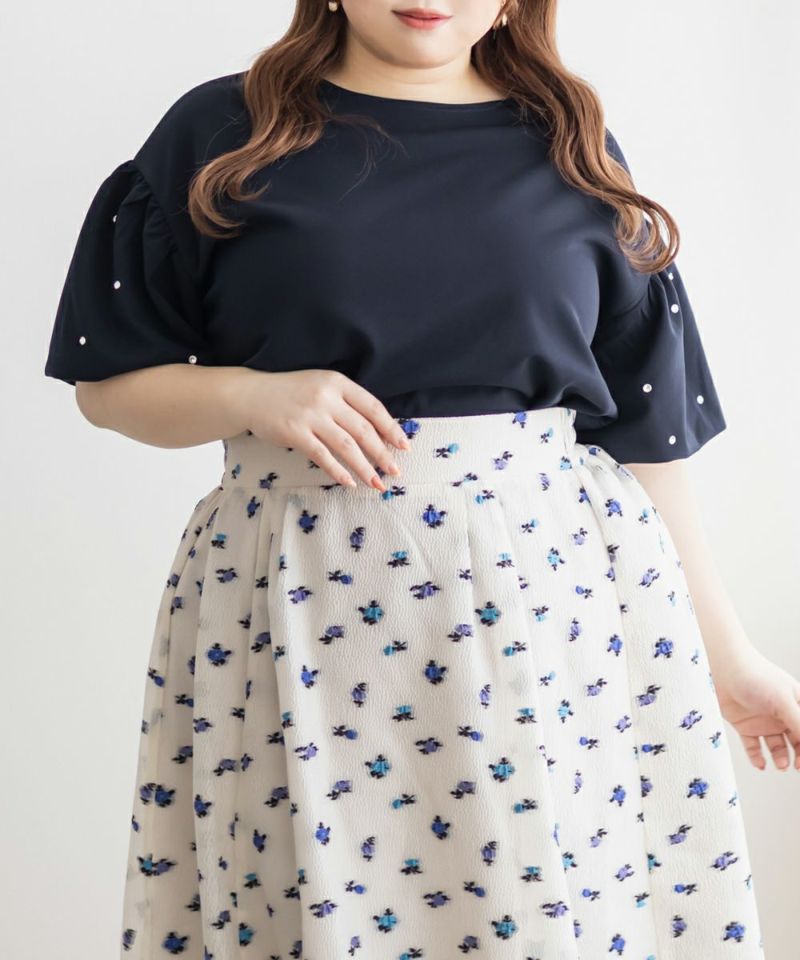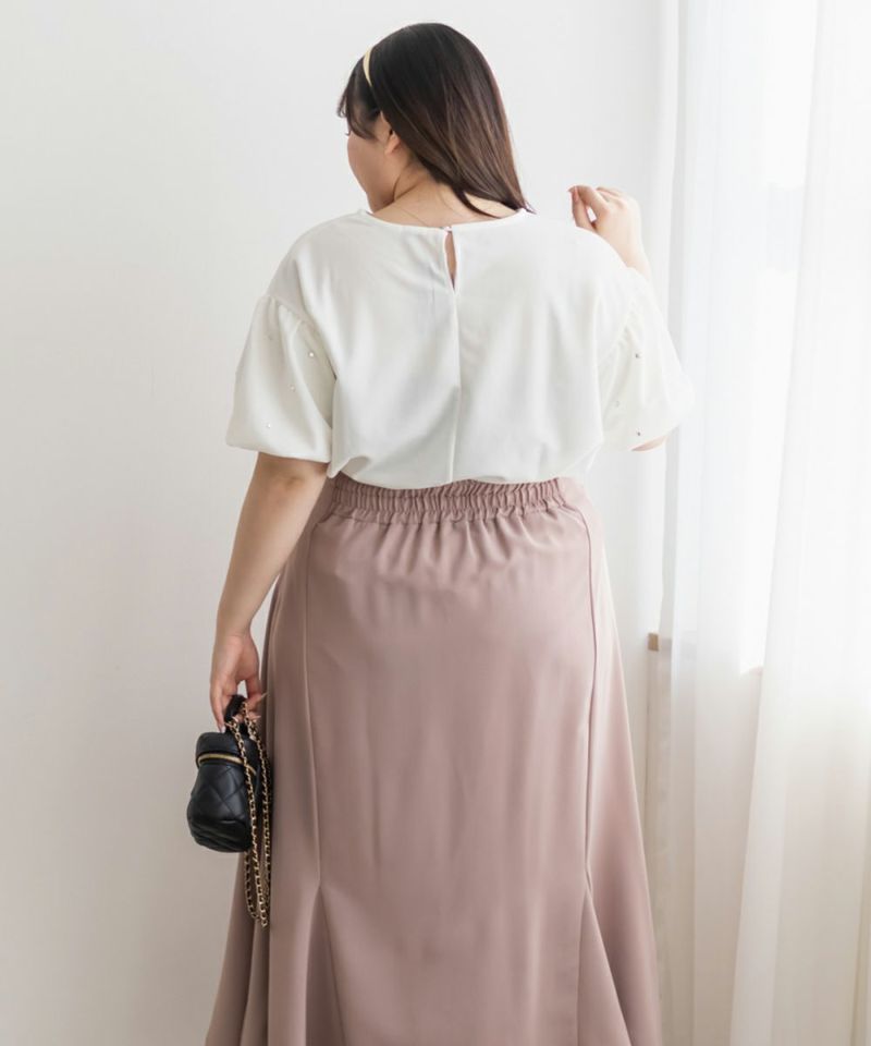 3Lサイズを着用して、サイズ感はちょうどよかったです◎身頃は程よくゆとりがあって、窮屈感はなくリラックスして着られました。袖口もピタッとしすぎず、二の腕まわりが気にならないデザインなのが嬉しいポイント♪パールが華やかに見せてくれるので、アクセいらずで着映えするトップスです♪さらっとした素材感で着心地もよく、カジュアルにもきれいめにも使えるので、オンオフ問わず着回せそう◎一枚で着ても、ジャンスカやキャミワンピとのレイヤードにもぴったりでした!