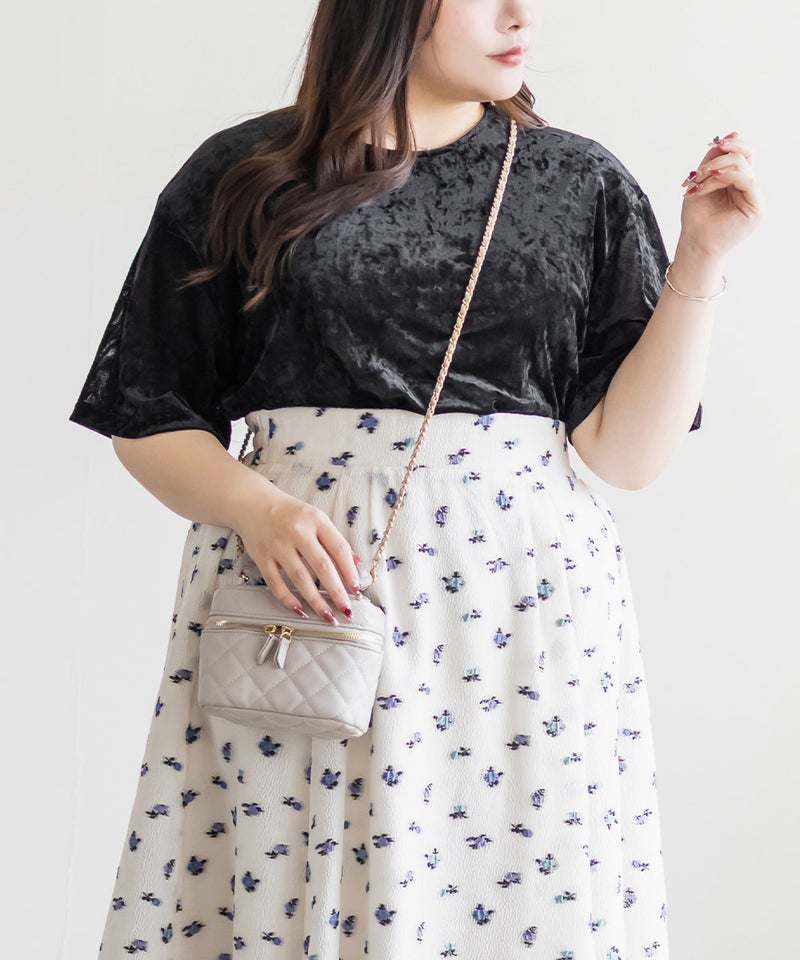 3Lサイズを着用して、ちょうどいいサイズ感でした。伸びのある生地で着心地もとてもらくちんでした◎ベロア生地の質感が着るだけで大人っぽい印象にしてくれます。透け感もあって上品な着こなしにぴったり。薄手なのでワンピースなどのインナー使いにも便利です!