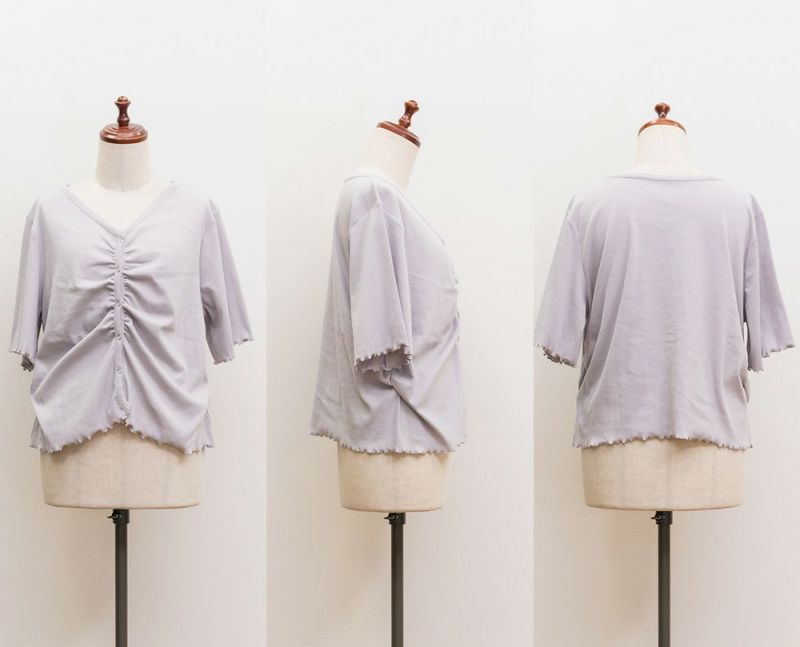 CLETTEオリジナル★ギャザーデザインVネックカットソー CLETTEオリジナル★ギャザーデザインVネックカットソー