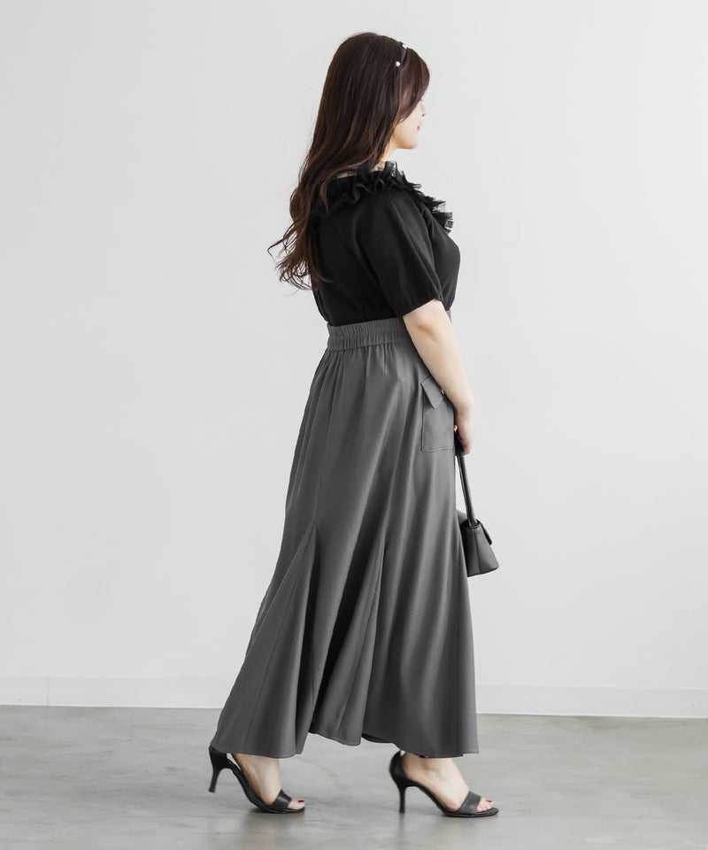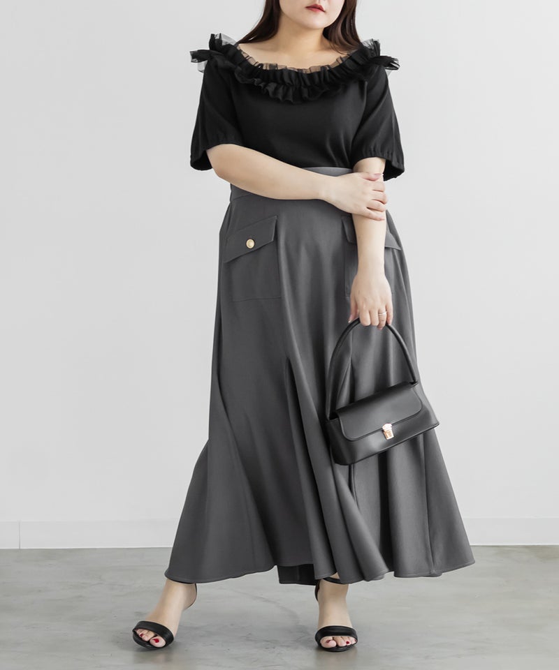 3Lサイズを着用してちょうどいい着心地でした!ネックラインが広く開いているので、大きめなサイズ感で着るよりピッタリに着ていただいた方が良いと思います♪オフショル・オンショル2WAYで着られるアイテムで、春らしく大人の女っぽさたっぷりの1枚です◎ネックがすっきり開いていて、肩を出して着るのが今っぽくて、合わせるだけでトレンドコーデが完成します!カジュアルにデニム合わせでも、ガーリーなスカートなどとも相性良くコーデしていただけます!