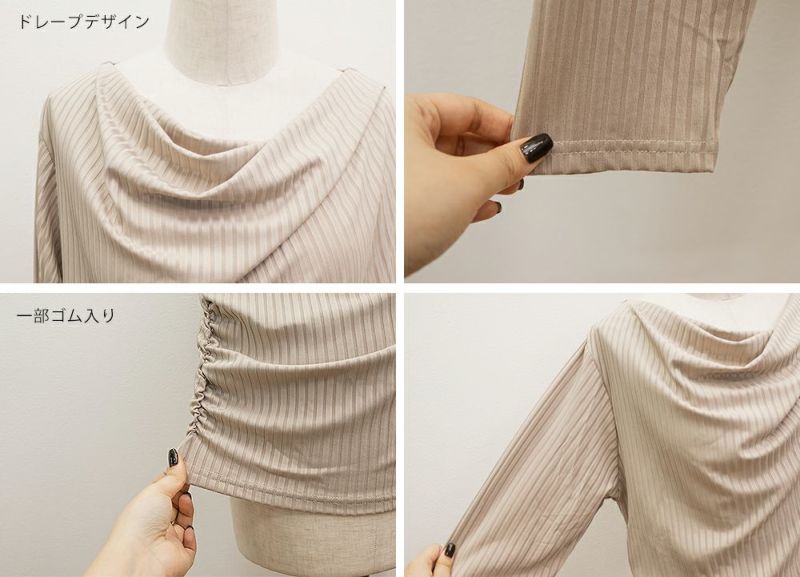 ワイドリブドレーププルオーバーカットソー ワイドリブドレーププルオーバーカットソー