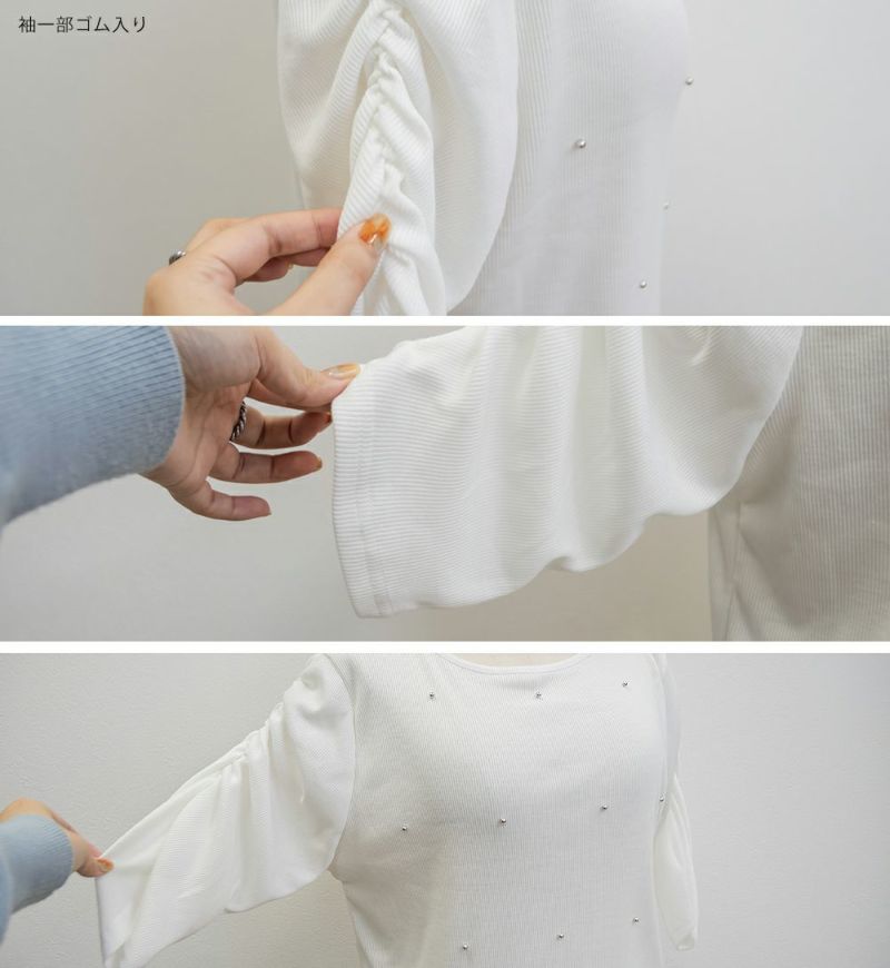3Lサイズを着用して、フィット感もちょうどよく、リブ素材で程よく身体に馴染んでくれる着心地です。パワショルのデザインでさりげなく肩にボリュームが出るので、華奢見えするのが嬉しいポイント◎二の腕もすっきり見える絶妙なシルエットです。ビーズのアクセントがさりげなく華やかで、シンプルながらもおしゃれ感のある一枚。きれいめにもカジュアルにも使えるので、デイリーに着回せるアイテムです。