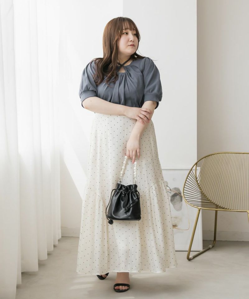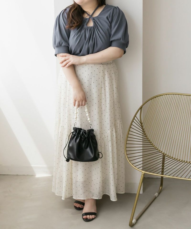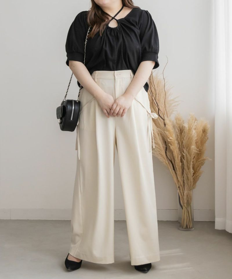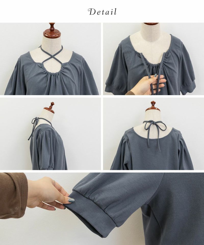 LLを着てちょうどいいサイズでした。胸元のドロップデザインやホルターネックが女性らしさたっぷりで、スカートは勿論パンツとも相性のいいトップスです!着やすいリブ素材だから、お出かけは勿論、動きやすさが欲しい日にもおすすめです♪胸元リボンは自分で搾れるので、自分好みにドロップシルエットなど調整できます◎少し短めの丈だから、裾を出してもバランス良く着こませます♪