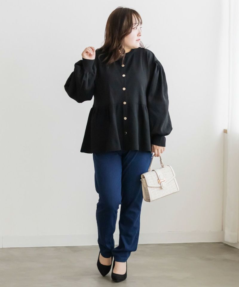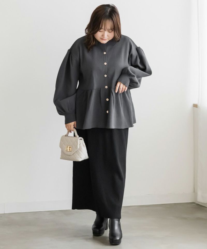 3Lを着てゆとりがありました。軽いスポンジニットのカーディガンで着心地はらくちんです!お腹や腰回りをカバーする、ペプラム切替になっていてすっきりと着やせできるデザインです!フロントはゴールドボタンでメリハリのある印象です。二の腕まわりもゆとりがあってニットだけどピタッとしないのが嬉しいです!パンツやコンパクトなシルエットのスカートと合わせるのがお勧めです♪