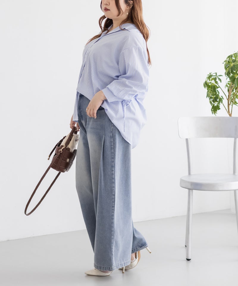 袖シャーリングストライプシャツ 袖シャーリングストライプシャツ