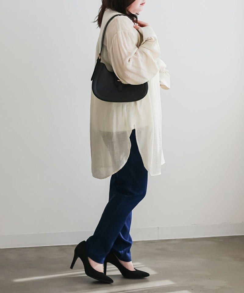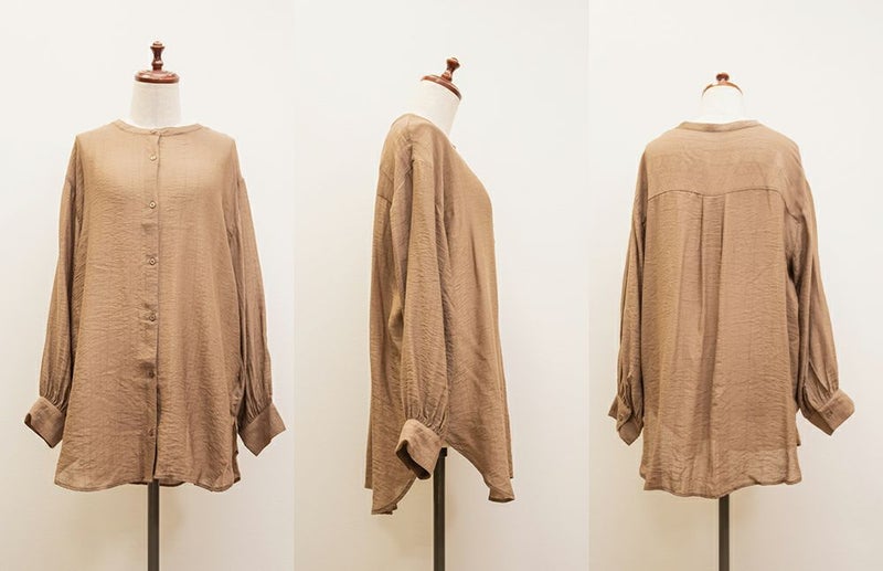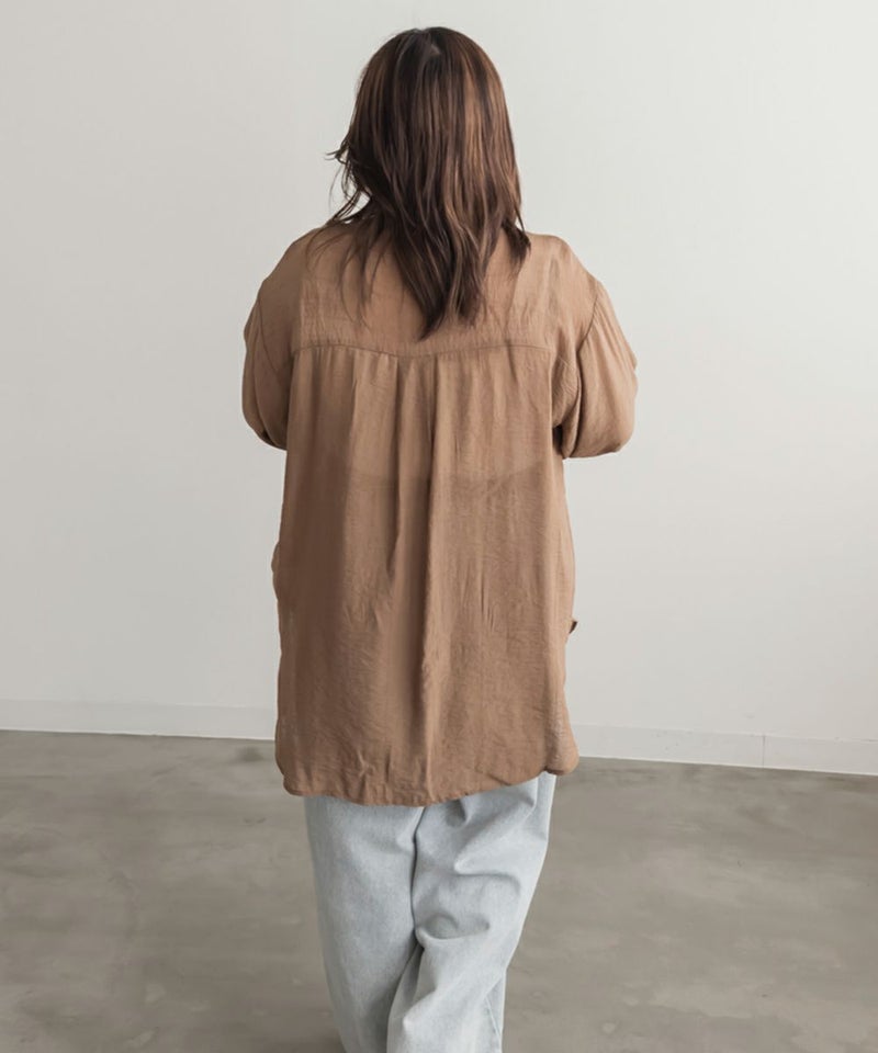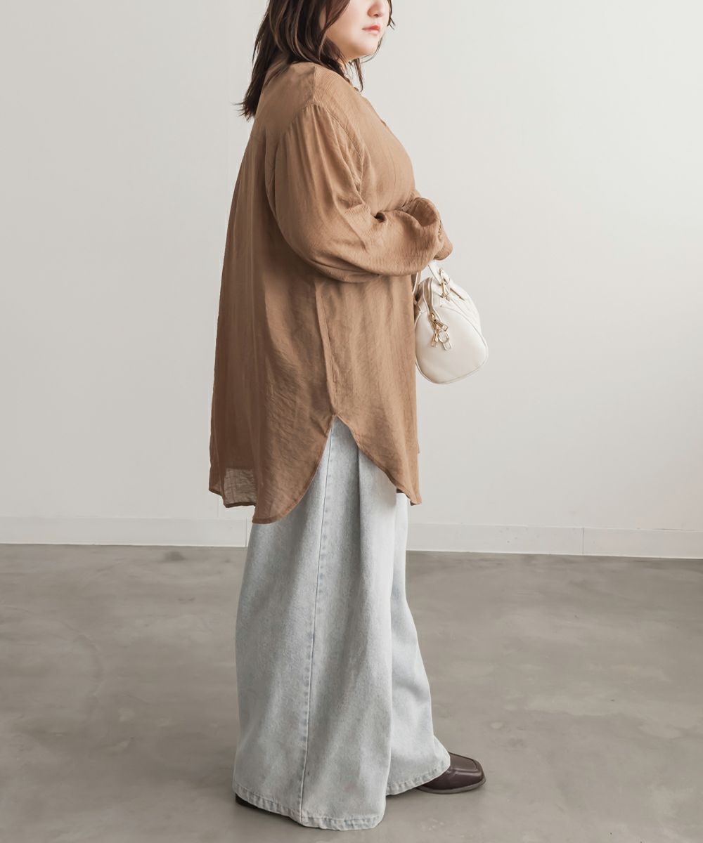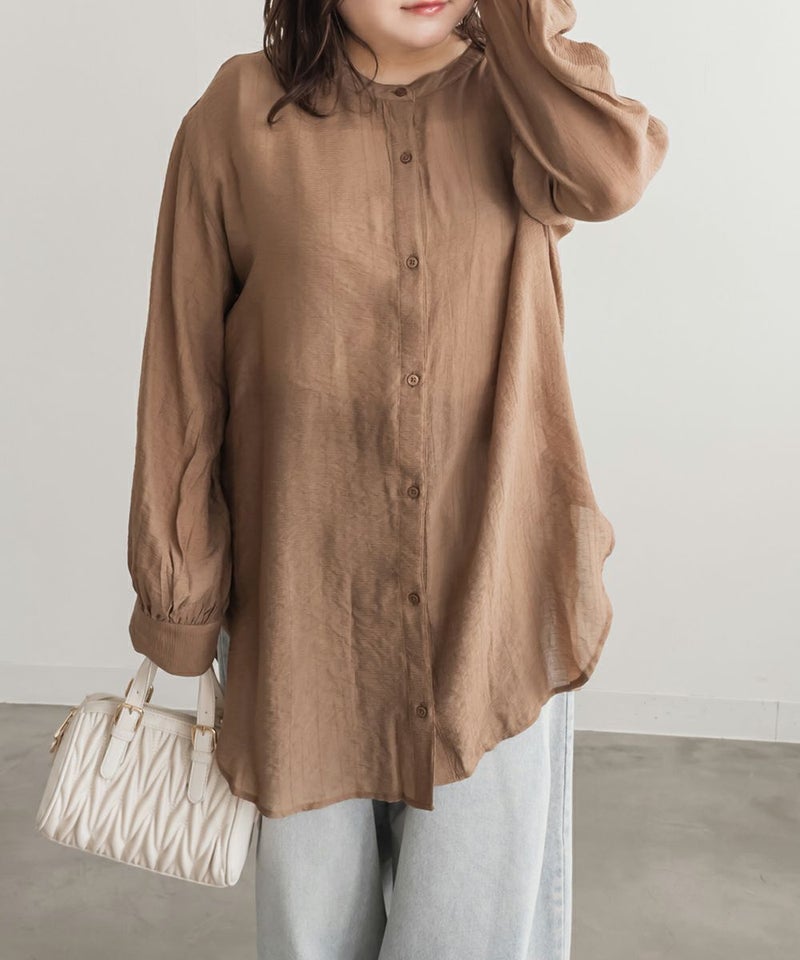 3Lサイズを着用して、ゆったりとしたシルエットでリラクシーな着心地でした♪ ふんわり軽やかなシアー素材が程よい抜け感を演出し、こなれた雰囲気になれます! ヒップまでしっかり隠れるチュニック丈なので、体型カバーも叶います! 前を開けて羽織りとしても、ボタンを閉じてトップスとしても着回しやすく、ロングシーズン活躍する一枚です!