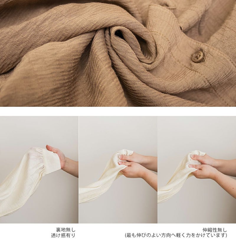 裏地・透け感・伸縮性 裏地無し、透け感有り、伸縮性無し