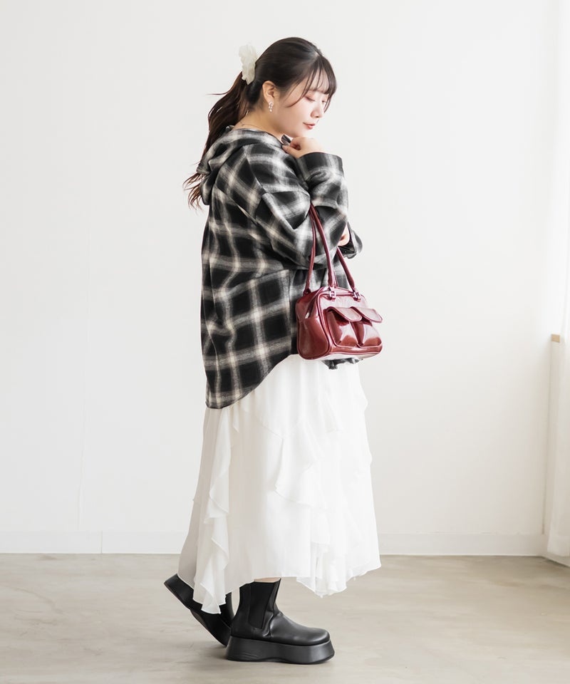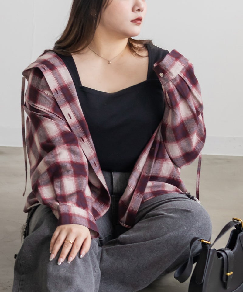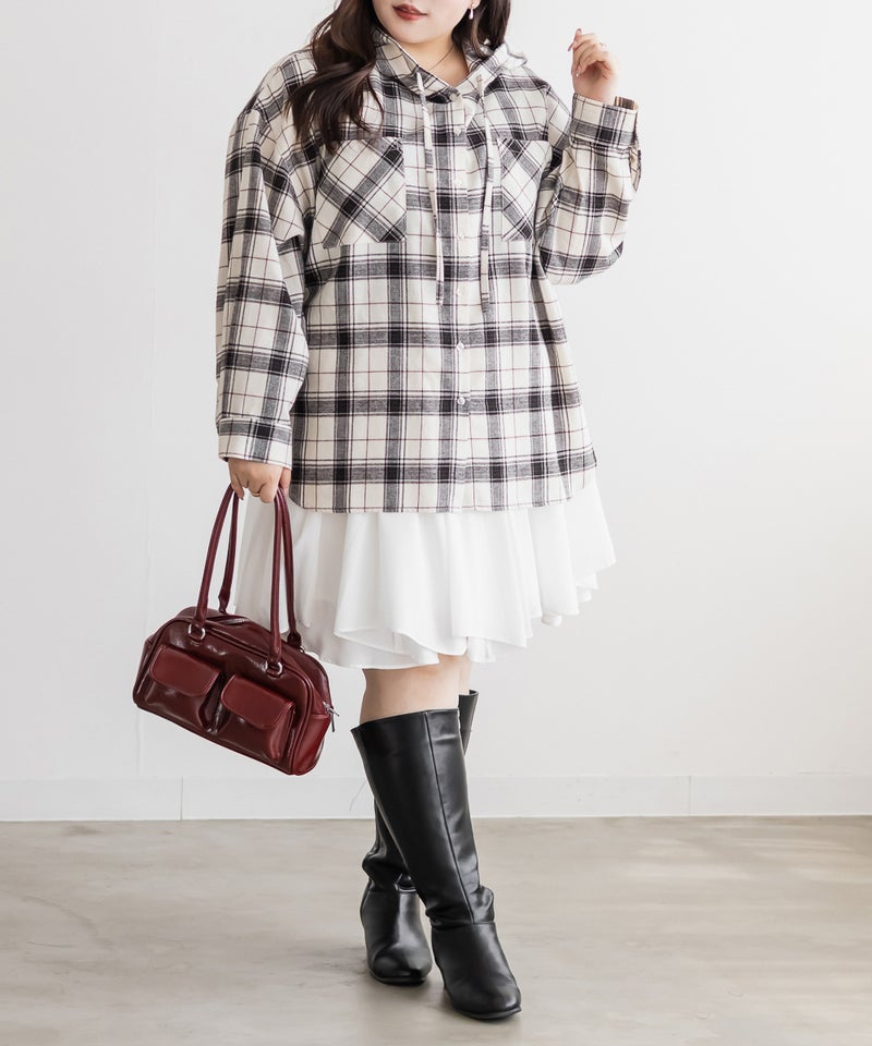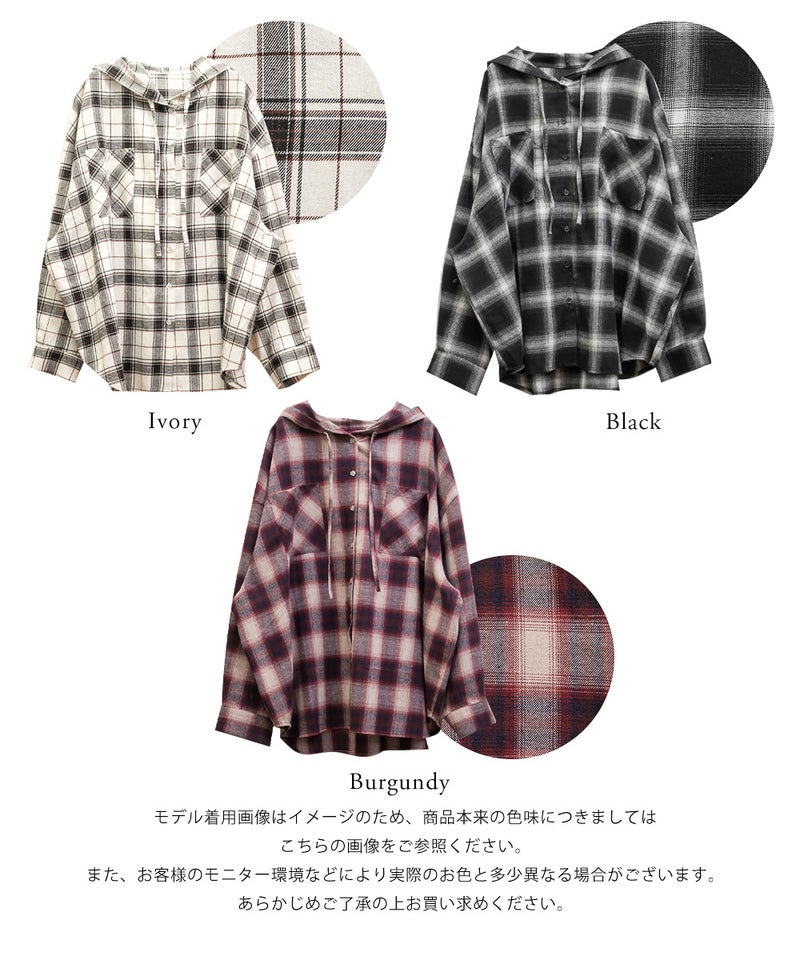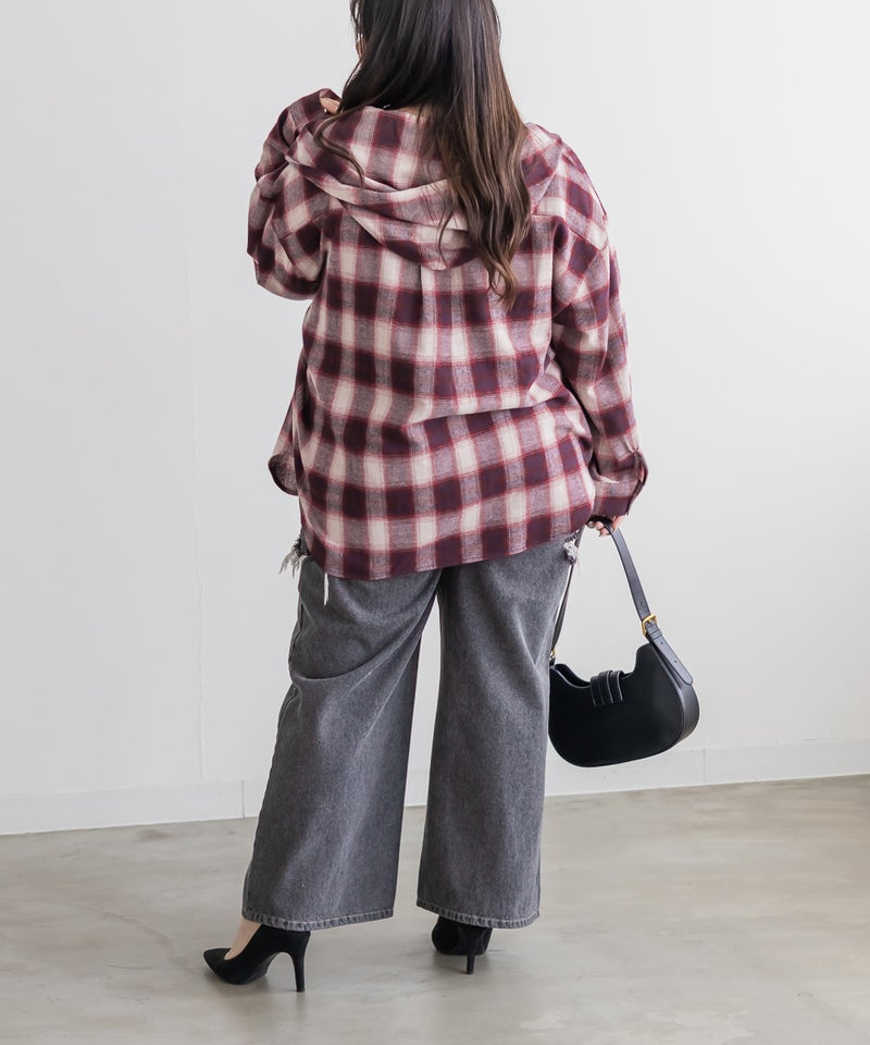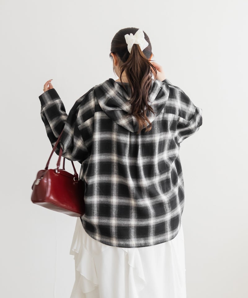 オーバーサイズチェック柄フードシャツ オーバーサイズチェック柄フードシャツ
