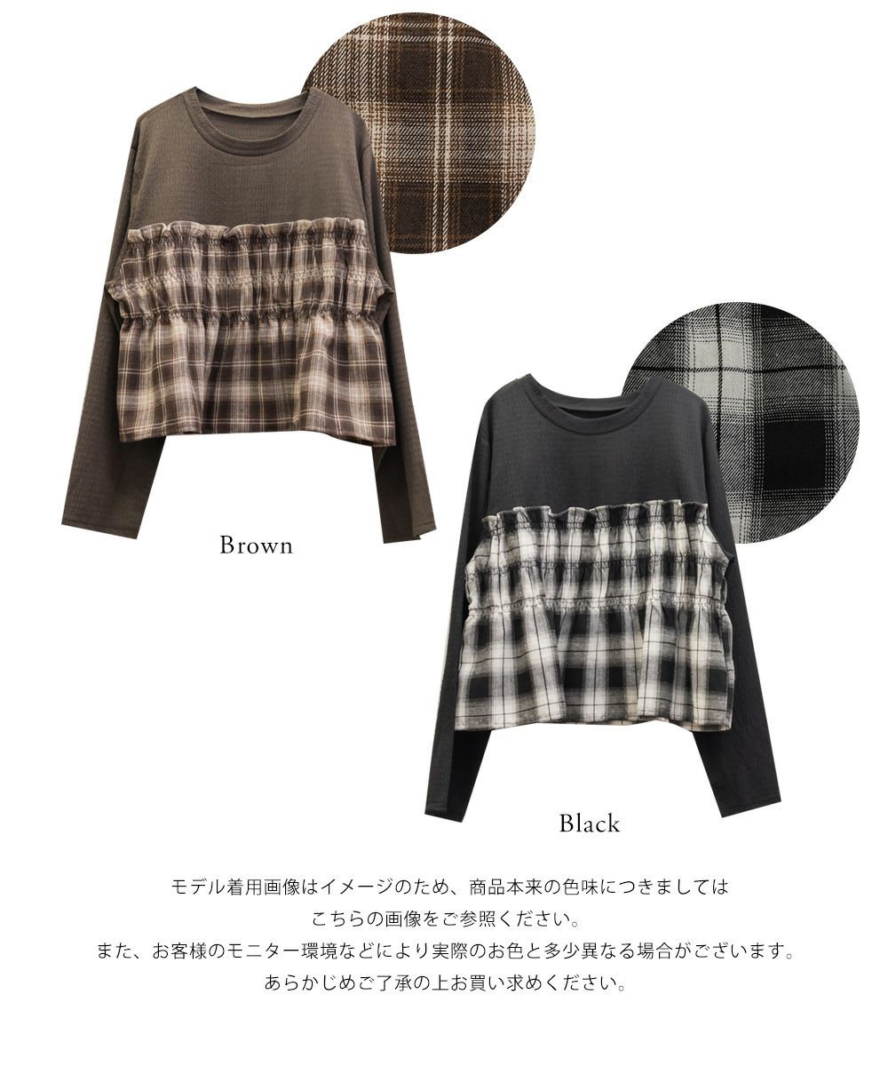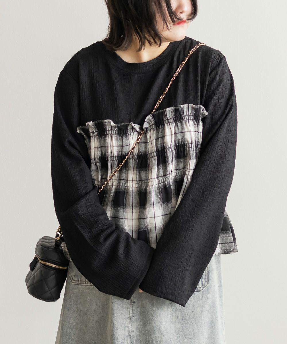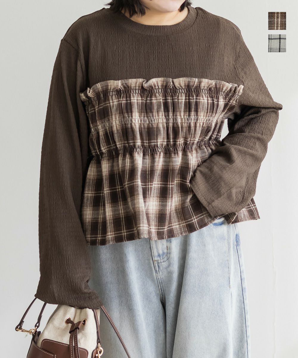 チェック柄ドッキングシャーリングブラウス チェック柄ドッキングシャーリングブラウス