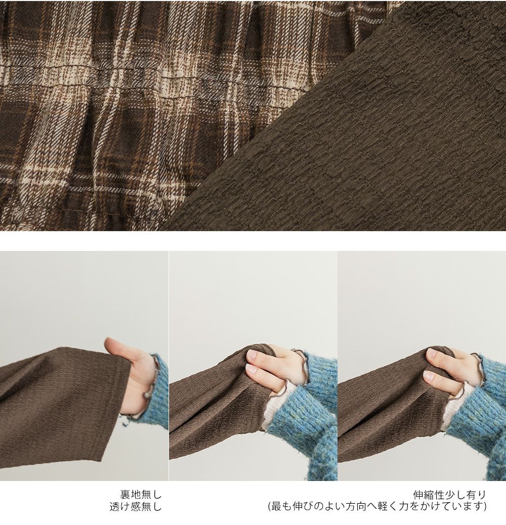 (デコルテ・袖部分は程良く伸縮性があり、表面感のあるカットソー素材です。)