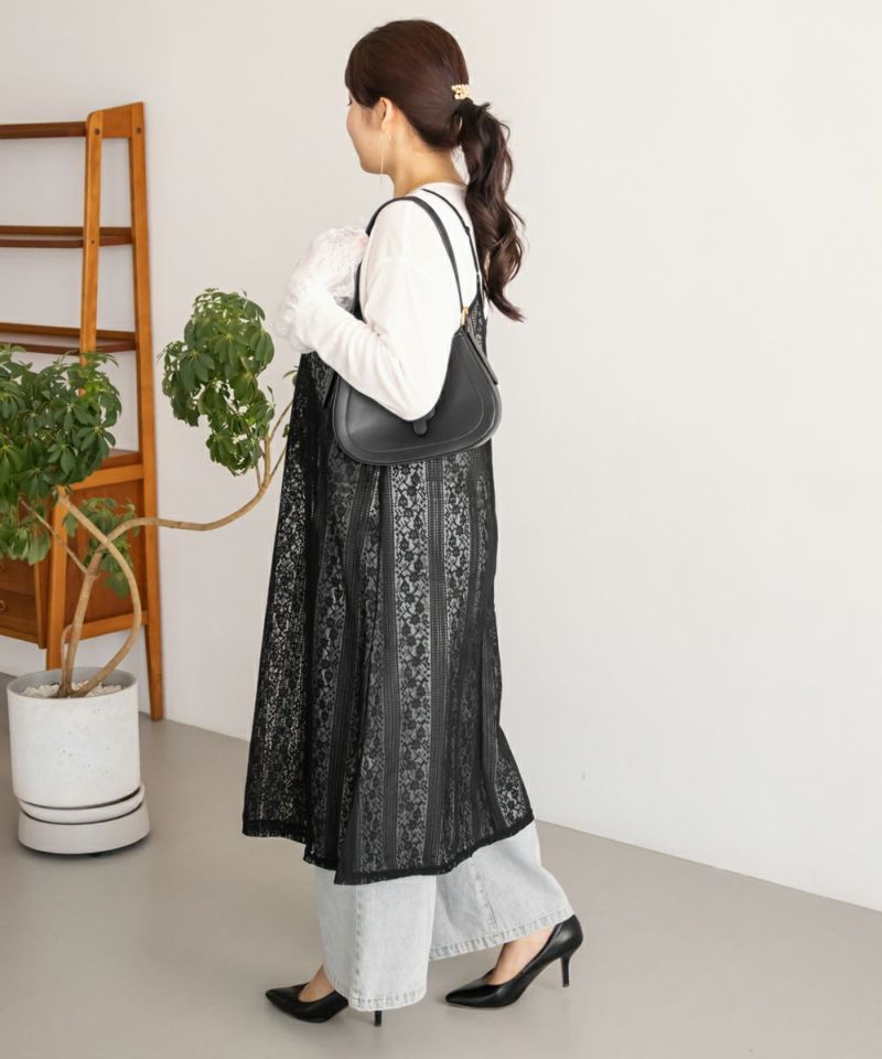 3Lを着てちょうどよかったです!総レースの華やかさが引き立つキャミワンピースです。 肩紐はアジャスター付きなので長さ調整もでき、自分に合わせたバランスで着こなせます。裾に向かって少し広がるシルエットが女性らしく、インナー次第幅広く活躍する一枚です♪1枚あると色々な雰囲気のレイヤードスタイルを楽しめます◎