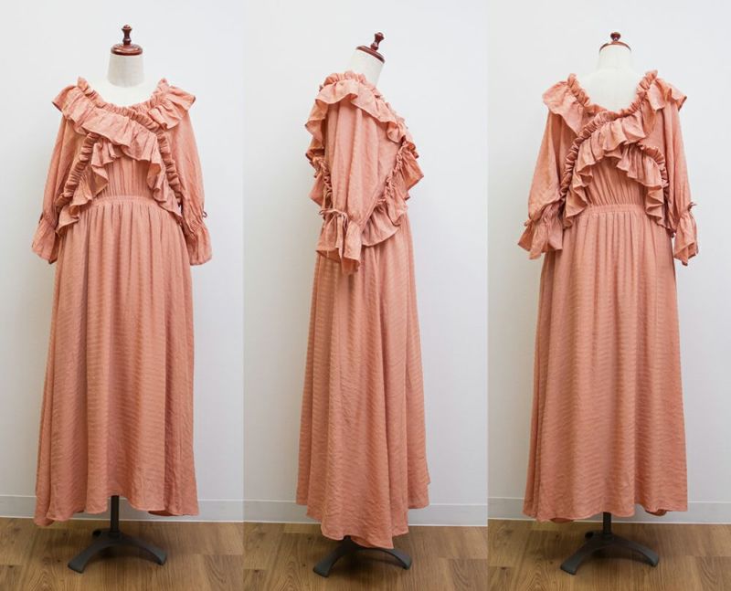 3Lサイズを着用しました。肩まわりやバストにも窮屈感がなく、全体的にちょうどいい着心地です♪ クロスデザインのフリルが顔まわりを華やかに見せてくれて、1枚でおしゃれ映えが叶います◎オフショルとしても着られる2WAY仕様で、気分に合わせて雰囲気を変えられるのも魅力。ウエスト位置が高めに設定されているので、足長効果もバッチリでスタイルアップが叶いました!軽やかな素材感で夏にぴったりな1着です。