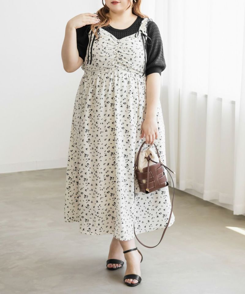 3Lを着てちょうどいいサイズ感した。身頃は程よくゆとりがあって、窮屈感なくリラクシーに着られます。華やかなフラワープリントが目を惹くワンピースは、肩に配色リボンがついていてかわいいアクセントになります!生地は程よく落ち感があって、広がりすぎないシルエットなのも大人っぽく着られるポイント◎ロングシーズン着られて、涼しくなってきたらカーディガンやデニムジャケットを羽織ってカジュアルダウンするのもおすすめです!一枚でしっかり映える主役級ワンピなので、ちょっとしたお出かけや女子会にもぴったりです♪