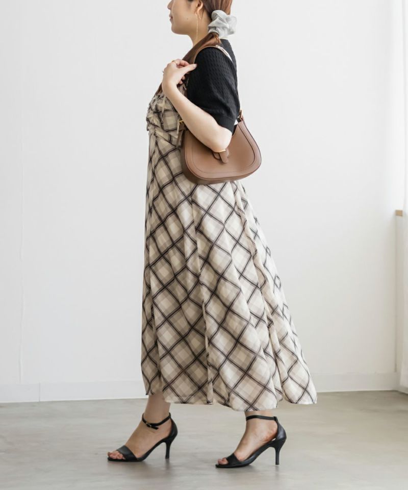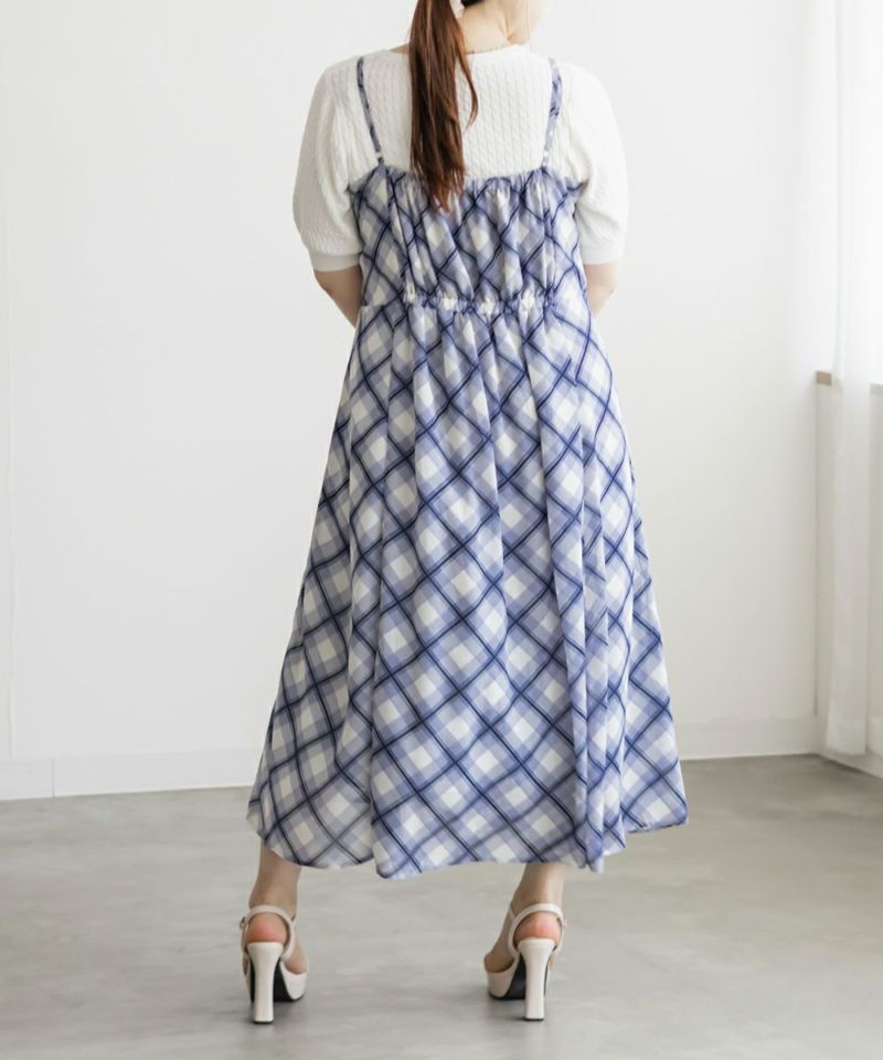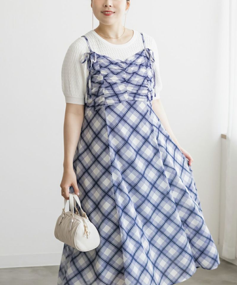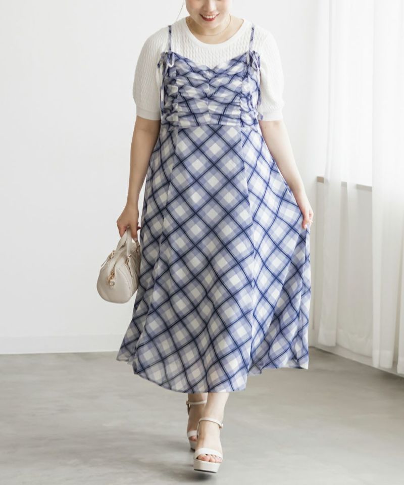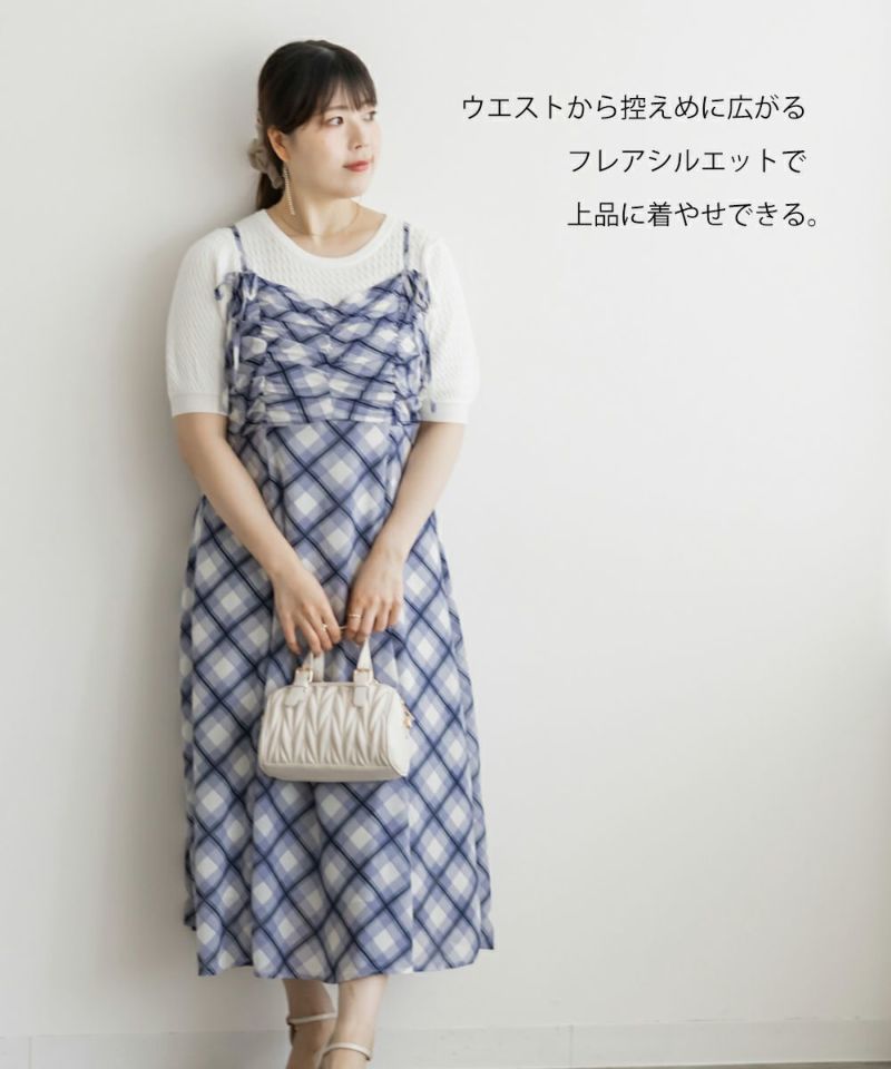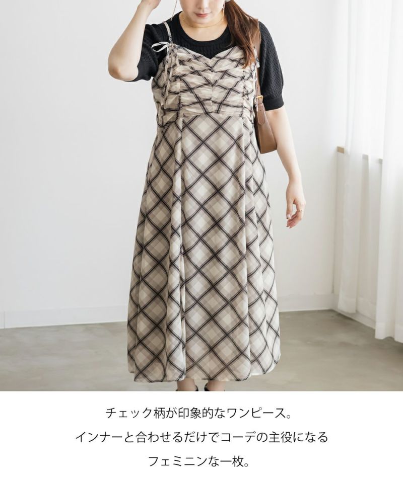 3Lサイズを着用して、身幅やウエストまわりもほどよくゆとりがあり、リラックスして着られました◎すっきりとしたシルエットだけど綺麗に広がるデザインが体のラインを拾わず、動くたびに軽やかに揺れてとても華やか♪シフォンの透け感とさりげないチェック柄が、大人の甘さをプラスしてくれます!肩紐の長さ調整ができるので、好みの丈感に合わせられて安心感も◎Tシャツやブラウスを重ねれば、ロングシーズン着回せそうな優秀アイテムです!