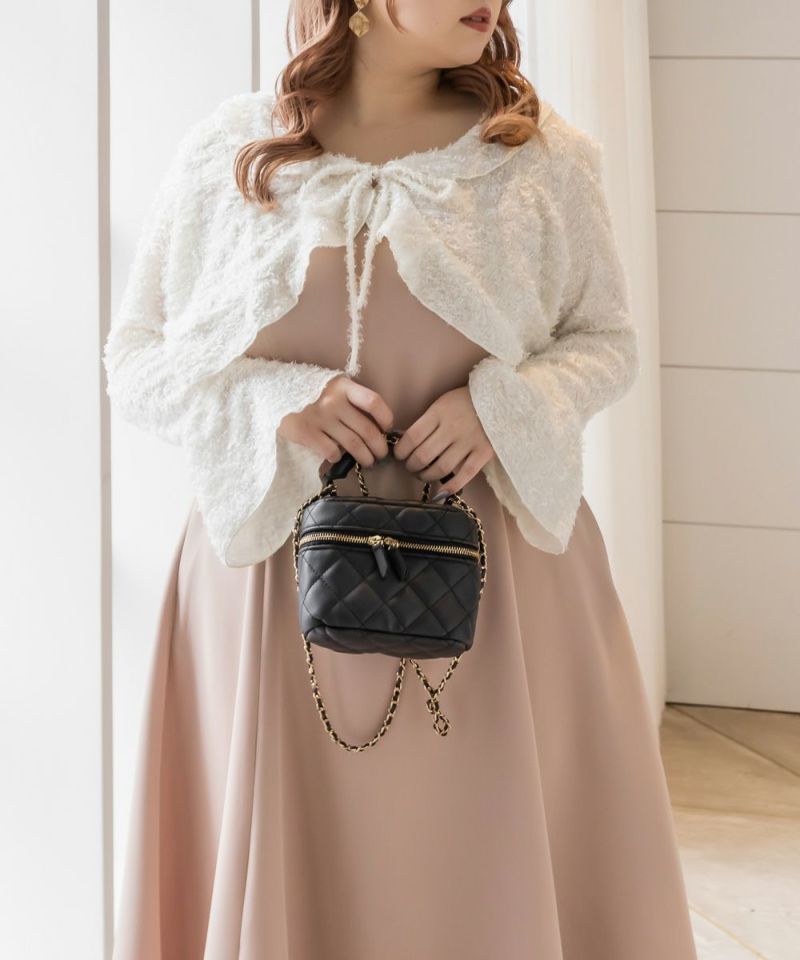 3Lを着てちょうどいいサイズでした。短め丈のボレロとワンピースのシルエットのバランスが絶妙で、バストをすっきりと、ウエストを細く、足を長く見せてくれました!着るだけで着やせできるセットアップです♪シャギーは肌に当たる部分は起毛感があまりないので、着ていて暑くなることも無さそう◎ごわごわしないので、アウターも問題なく着用できます。秋冬のデートやイベントにたくさん着ていきたいワンピースです!インナーにタートルネックを着て、あたたかく着こなすのもお勧めです!