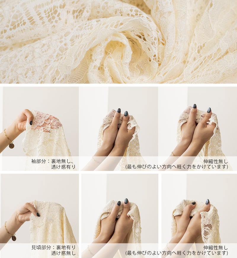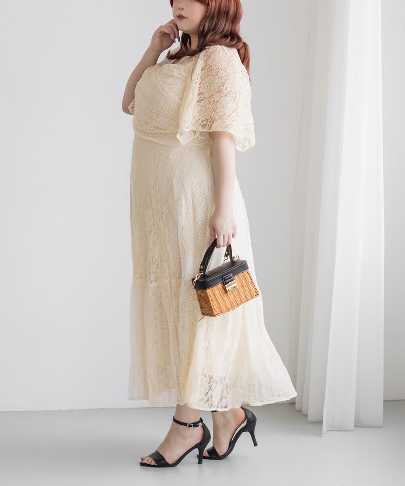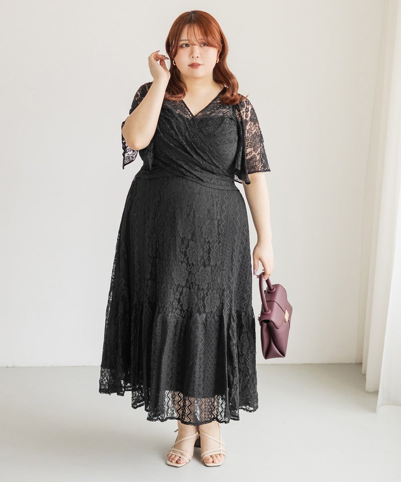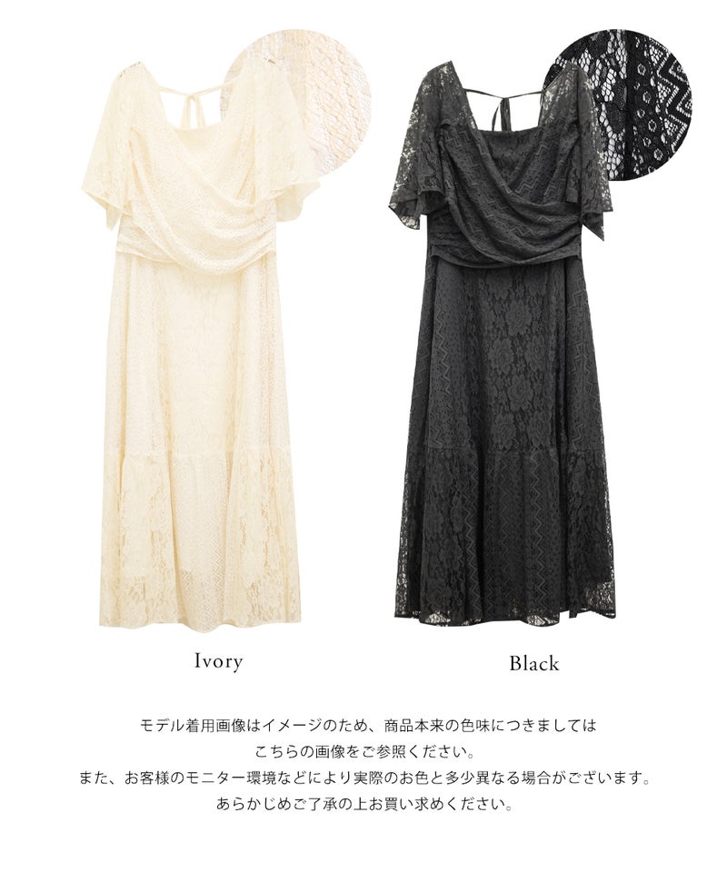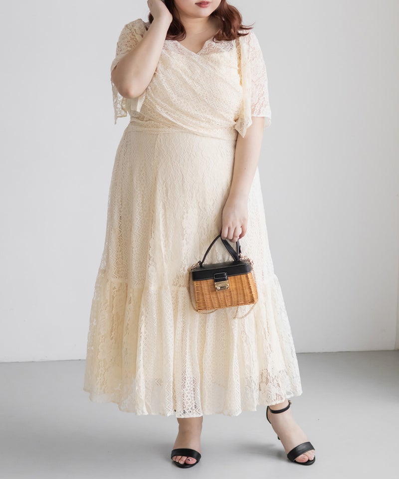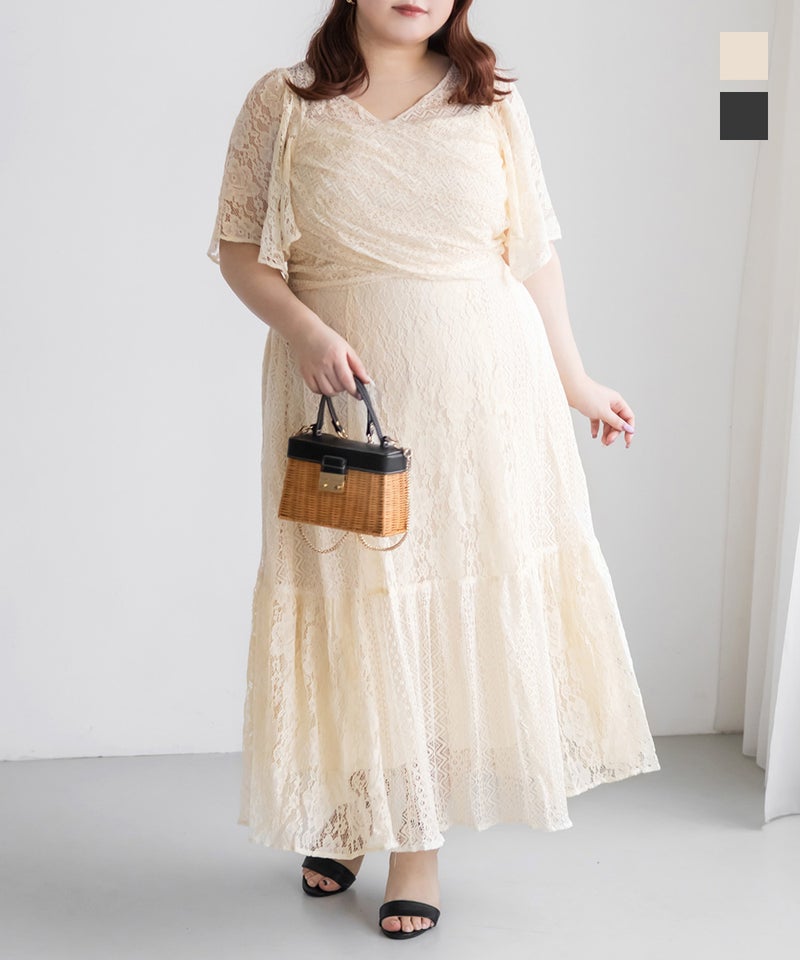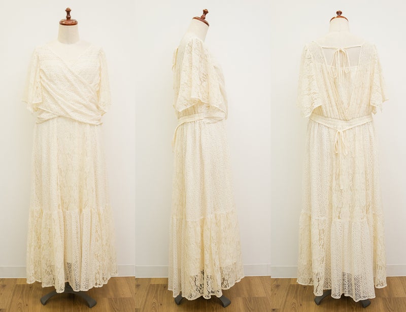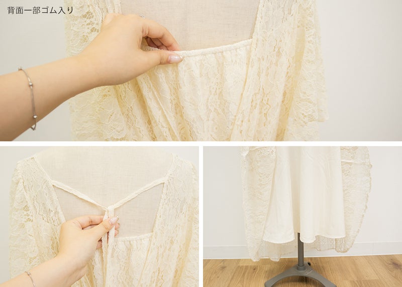 3Lサイズを着用しましたが程よいゆとりがありストレスなく着用できました◎レース生地自体は伸びないですが、後ろゴムで楽ちんながら、前から見たときはすっきり見えてきれいめな印象です。胸元のクロスレースが繊細で、上品なフェミニンムードが漂うデザインです!デコルテは開きすぎず、程よい肌見せで大人っぽく着られます♪軽やかな素材感とシルエットで、デイリーにもお出かけにも着まわせる万能ワンピースです!ちょっと特別なシーンにもぴったりで、色々なシーンで活躍しそう♪