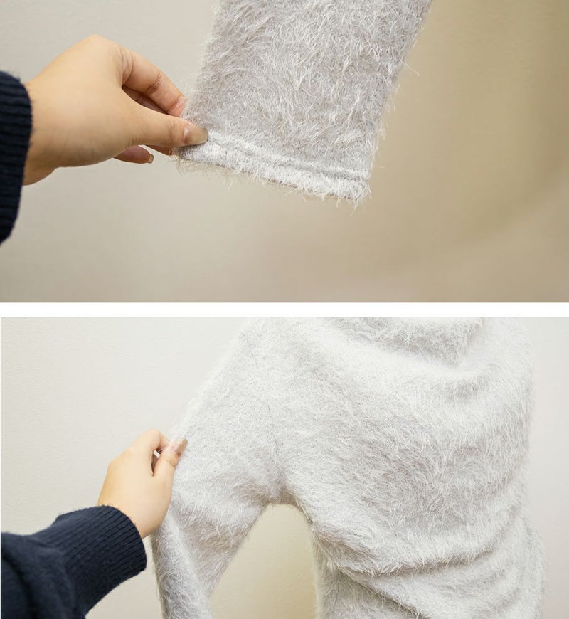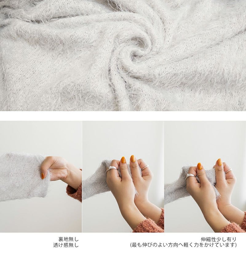 生地感 毛足の長い柔らかなニットソー素材です。