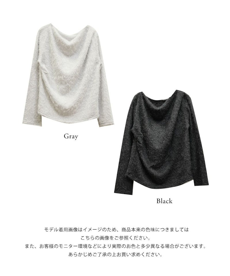 3Lサイズを着用して、ちょうどいいサイズ感でした。ふわふわのシャギー生地なのでボディラインを拾いづらく、華奢見せ&女性らしさをプラスする印象でした!顔周りをスッキリ見せるドレープがシンプルながら女性らしいデザインで、こなれ感プラスして1枚で大人っぽい洗練された雰囲気になれます♪薄手の生地感なので、季節感がありつつアウターを重ねやすいのも嬉しいです!伸縮性の良い素材感とシンプルなカラー展開で、合わせるボトムを選ばないのもうれしいポイントです!トレンド感あるトップスなので1枚持っておきたいです!