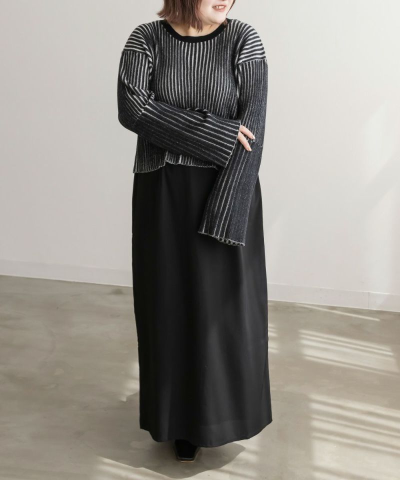 3Lサイズを着てゆとりのあるサイズ感でした。ニットで伸びがとっても良いので着心地抜群でした◎ショート丈なのでハイウエストのボトムや中にシャツを着たり、キャミワンピなどと合わせるのがおすすめです♪縦のラインがお洒落なニットなので、シンプルなボトムと合わせても大人っぽくこなれ感のある着こなしになります!コンパクトなのでアウターを重ねたり、これからの季節たくさん着回しできそうです。