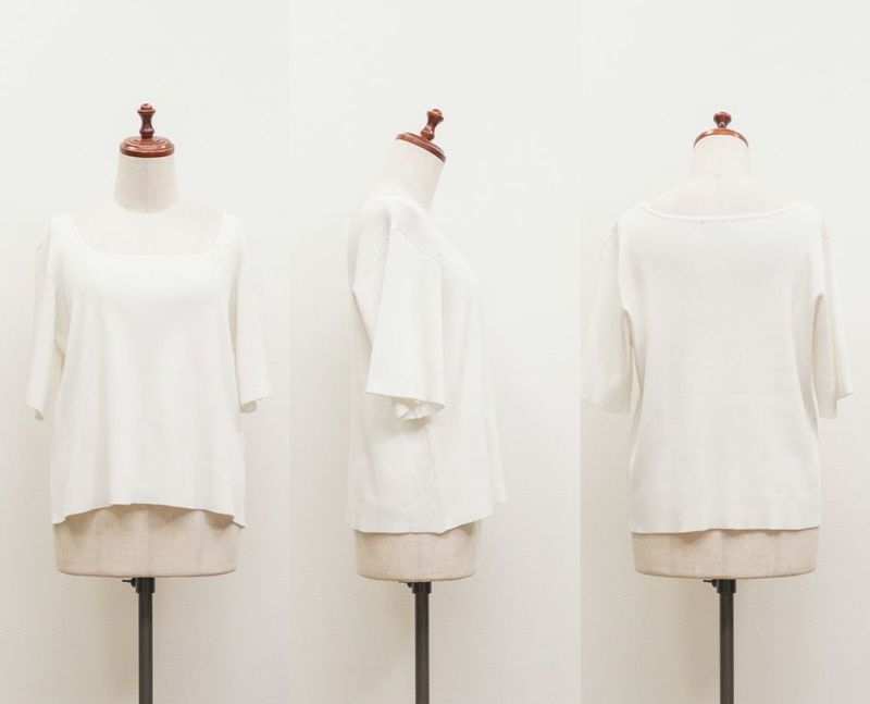 3Lサイズでぴったりすぎず、身幅・腕まわりにも余裕があって窮屈感なし♪伸縮性が良いサマーニットでらくちんでした!スクエアネックが顔まわりをすっきり見せてくれて、抜け感のある印象にしてくれます。リブ素材なのでボディラインを拾いすぎず、程よくフィットして着心地も抜群です!インでもアウトでも着やすい丈感で、スカートにもパンツにも合わせやすい万能アイテムです。1枚ではもちろん、ジャンスカやサロペットのインナーとしても大活躍しそう!シンプルなデザインなのでオンオフ問わず着回しが効きます!