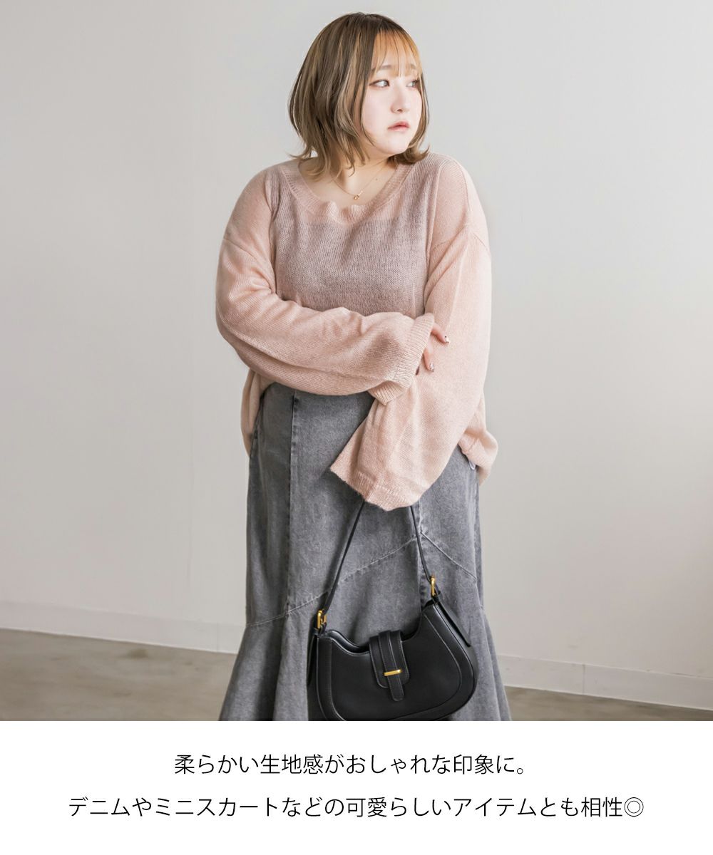 CLETTE オリジナル モヘア シアー ニット 長袖 クレット プラスサイズ LL 3L 4L 透け感 キレイめ CLETTEオリジナル★モヘアシアーニット