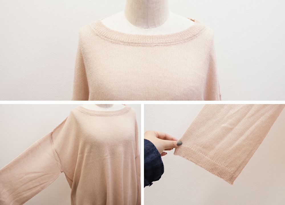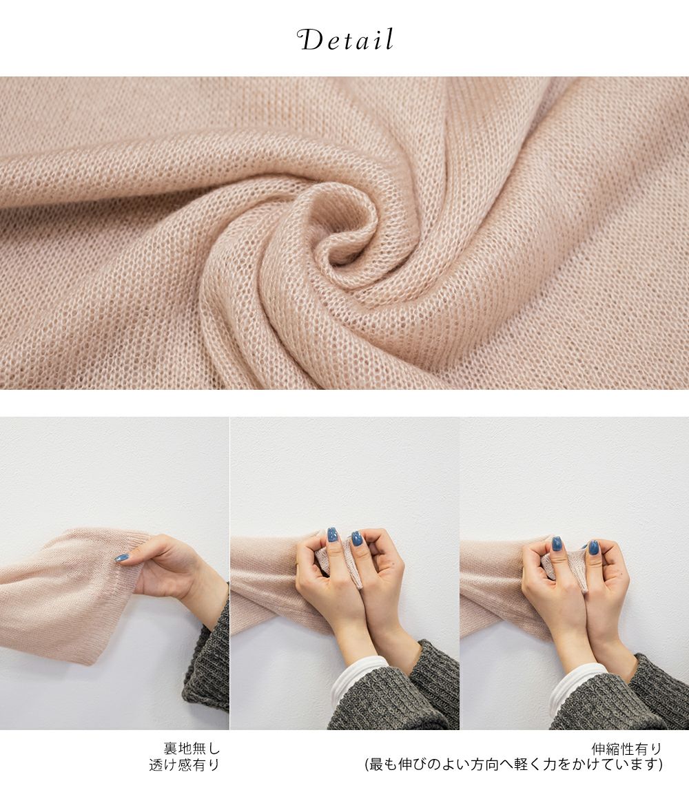 生地感 やや毛足が長く透け感のある柔らかなニット素材です。