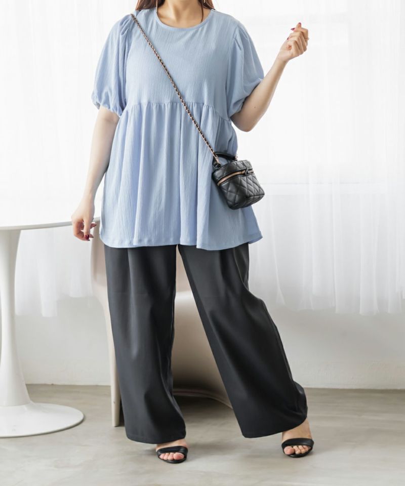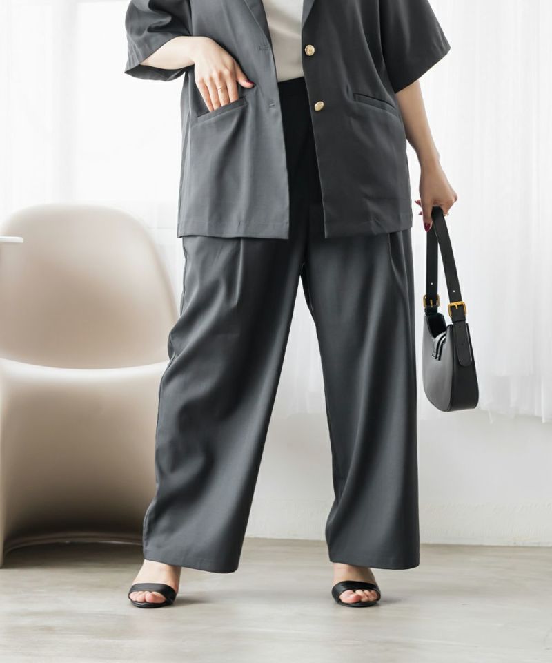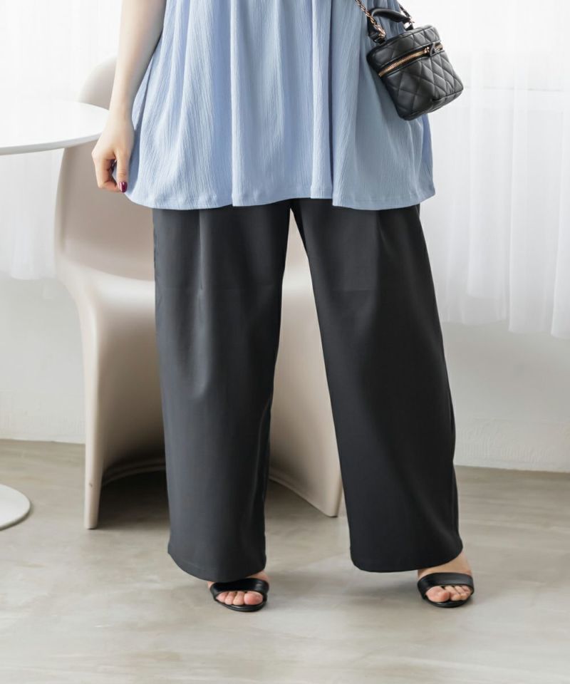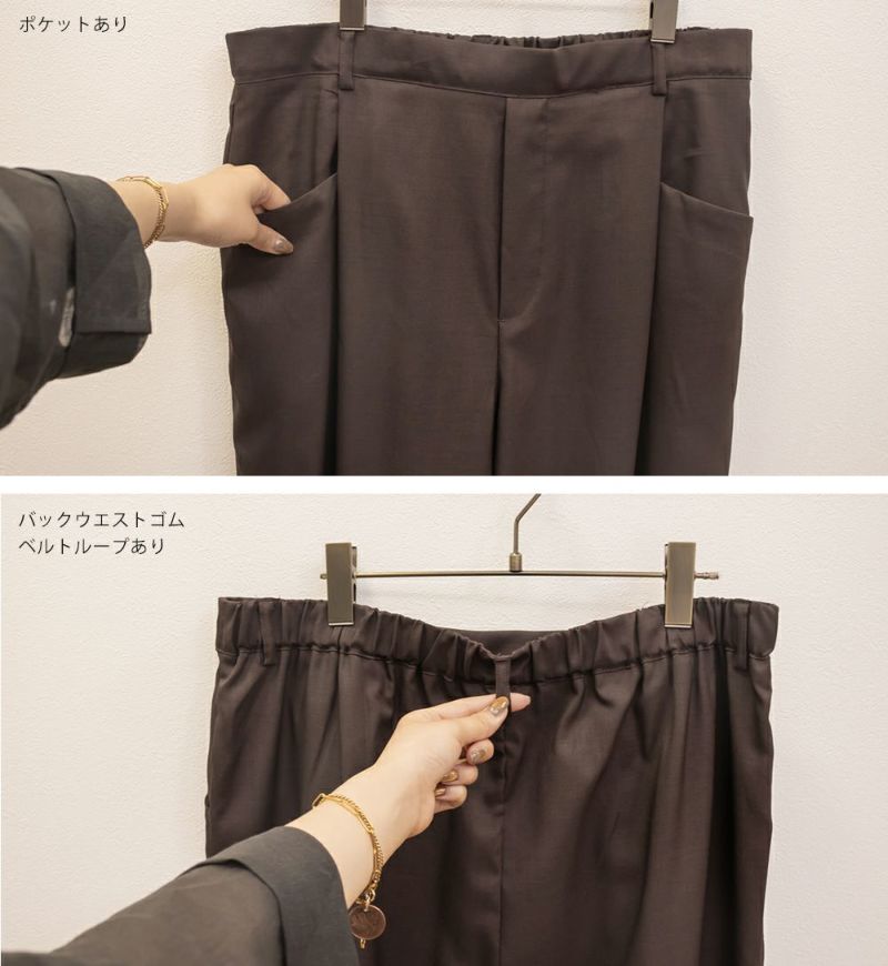 3Lサイズを着用して丁度いいサイズ感でした。いつも通りのサイズ選びで問題なさそうです◎ウエストは後ろゴムでらくちん♪ゆとりがありつつすっきり見えるシルエットで、どんなシーンでも活躍するアイテム!ワイドパンツだけどフェミニンなスタイルになれて、可愛い系のトップスとも、シンプルなトップスとも相性がいいのでおすすめです。ジャケットでセットアップもできるので、簡単におしゃれなコーデが完成します!お仕事にもつかえるキレイめな雰囲気で、オールシーズン使える便利な1枚です!